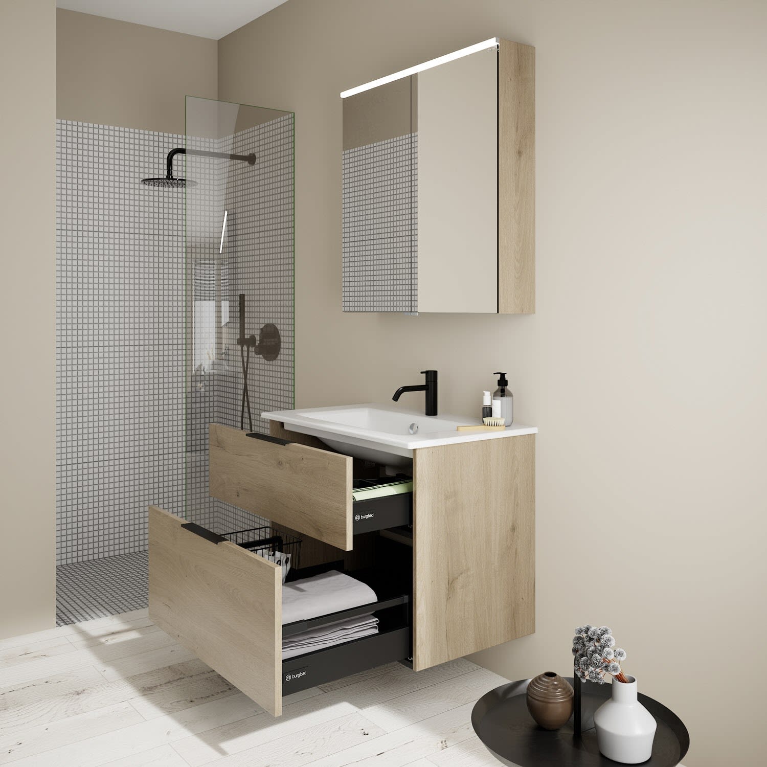 burgbad Eqio Waschtischkombination mit Keramik-Waschtisch Slim, 82 cm, mit Griff G0200