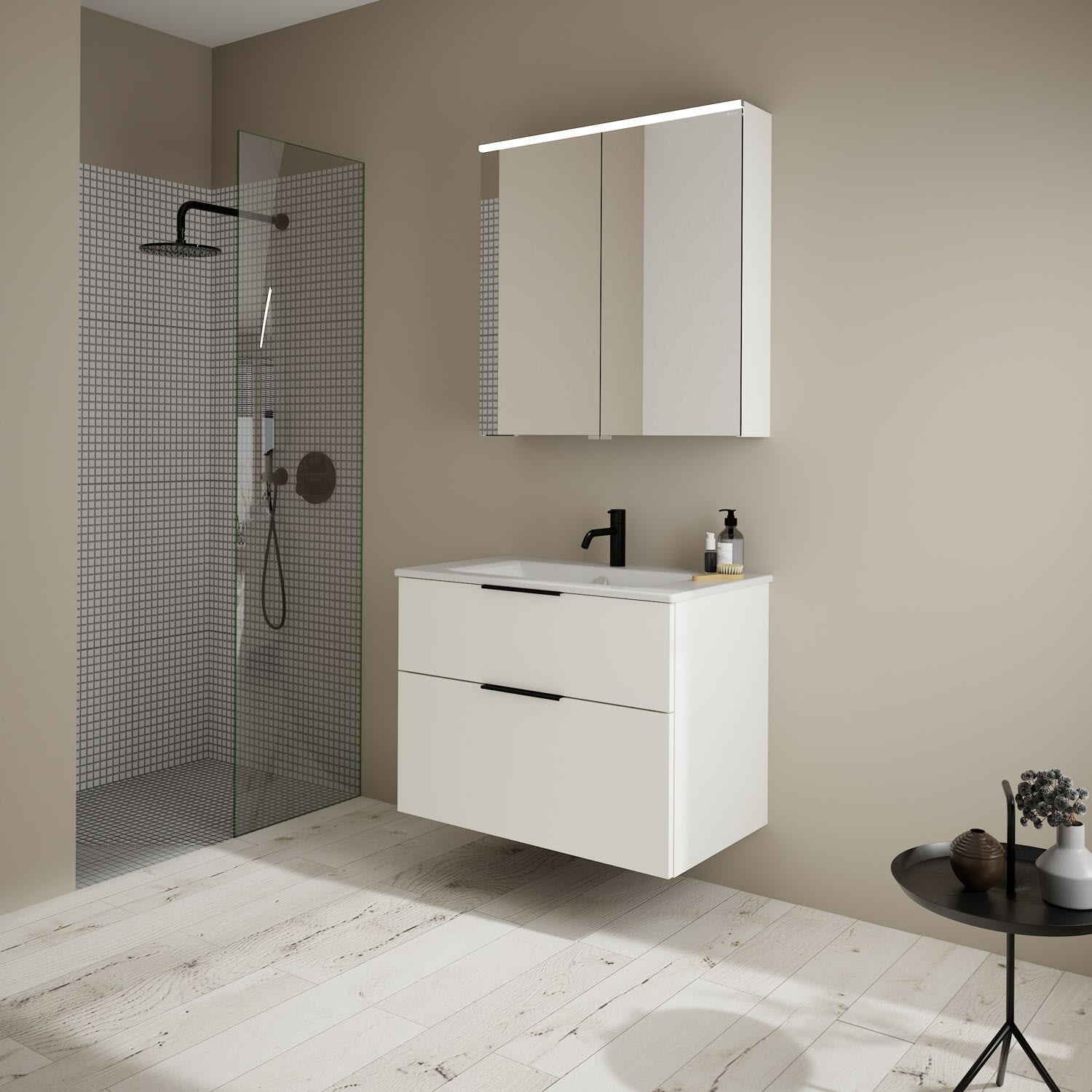 burgbad Eqio Waschtischkombination mit Keramik-Waschtisch Slim, 82 cm, mit Griff G0200