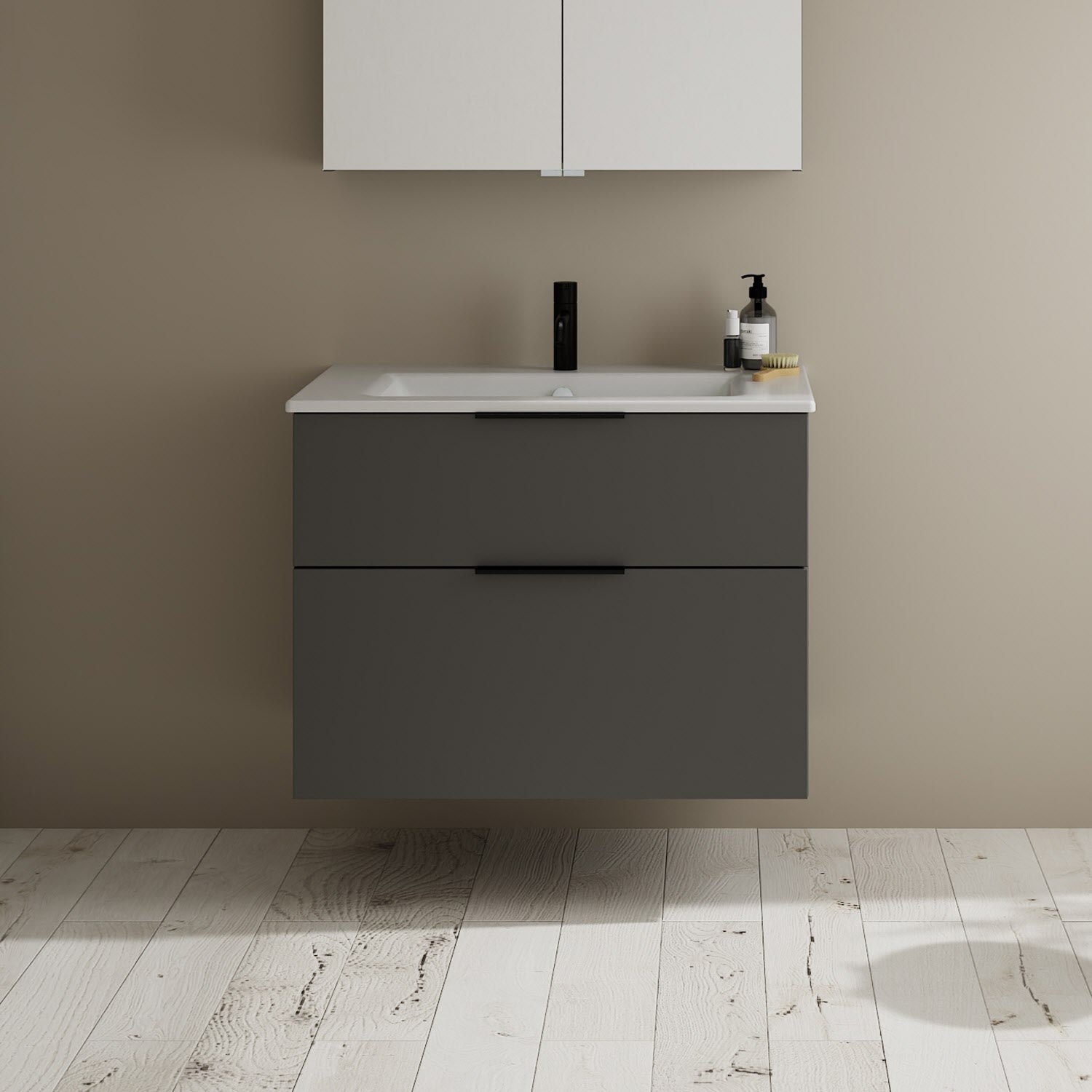 burgbad Eqio Waschtischkombination mit Keramik-Waschtisch Slim, 82 cm, mit Griff G0200