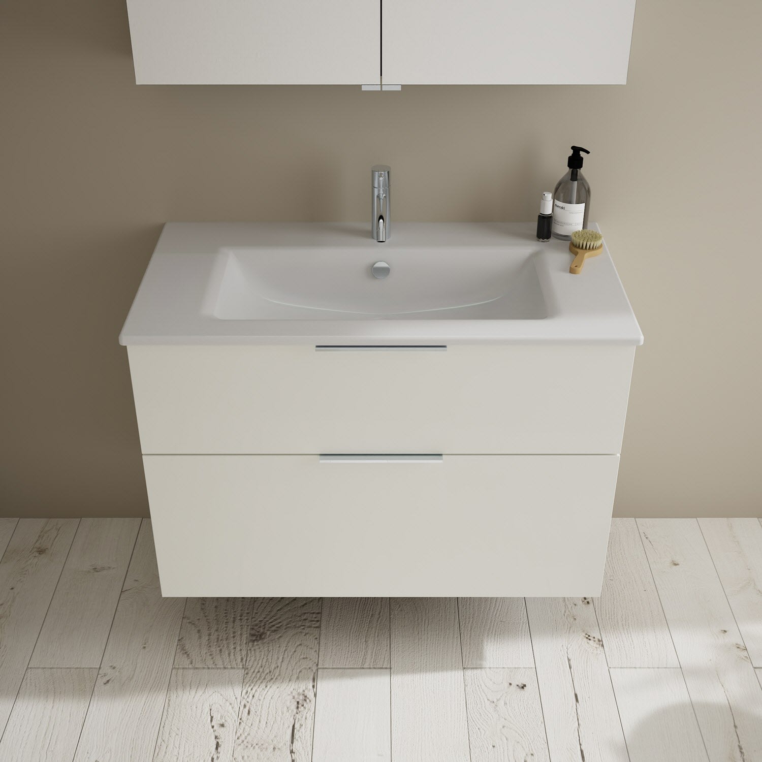 burgbad Eqio Waschtischkombination mit Keramik-Waschtisch Slim, 92 cm, mit Griff G0146