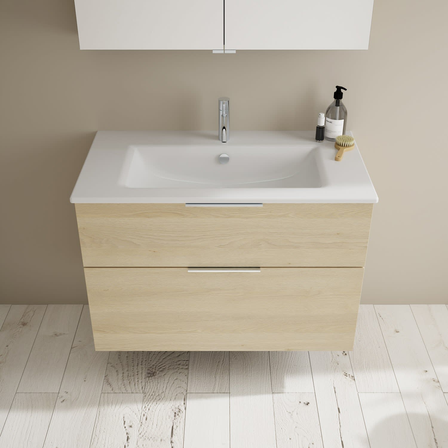 burgbad Eqio Waschtischkombination mit Keramik-Waschtisch Slim, 92 cm, mit Griff G0146