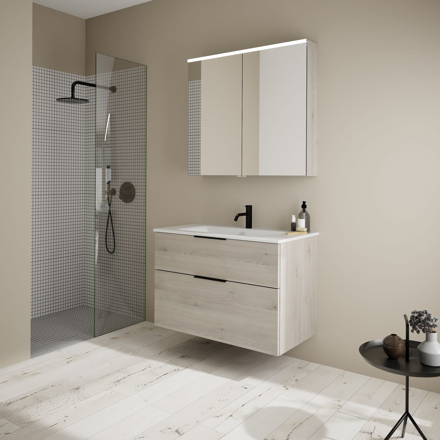 burgbad Eqio Waschtischkombination mit Keramik-Waschtisch Slim, 92 cm, mit Griff G0200