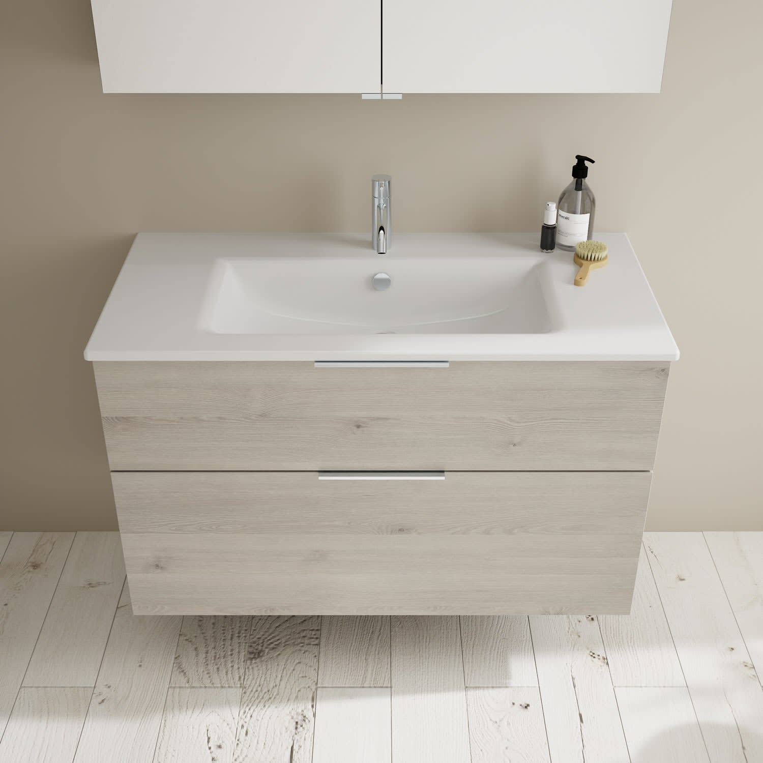 burgbad Eqio Waschtischkombination mit Keramik-Waschtisch Slim, 102 cm, mit Griff G0146
