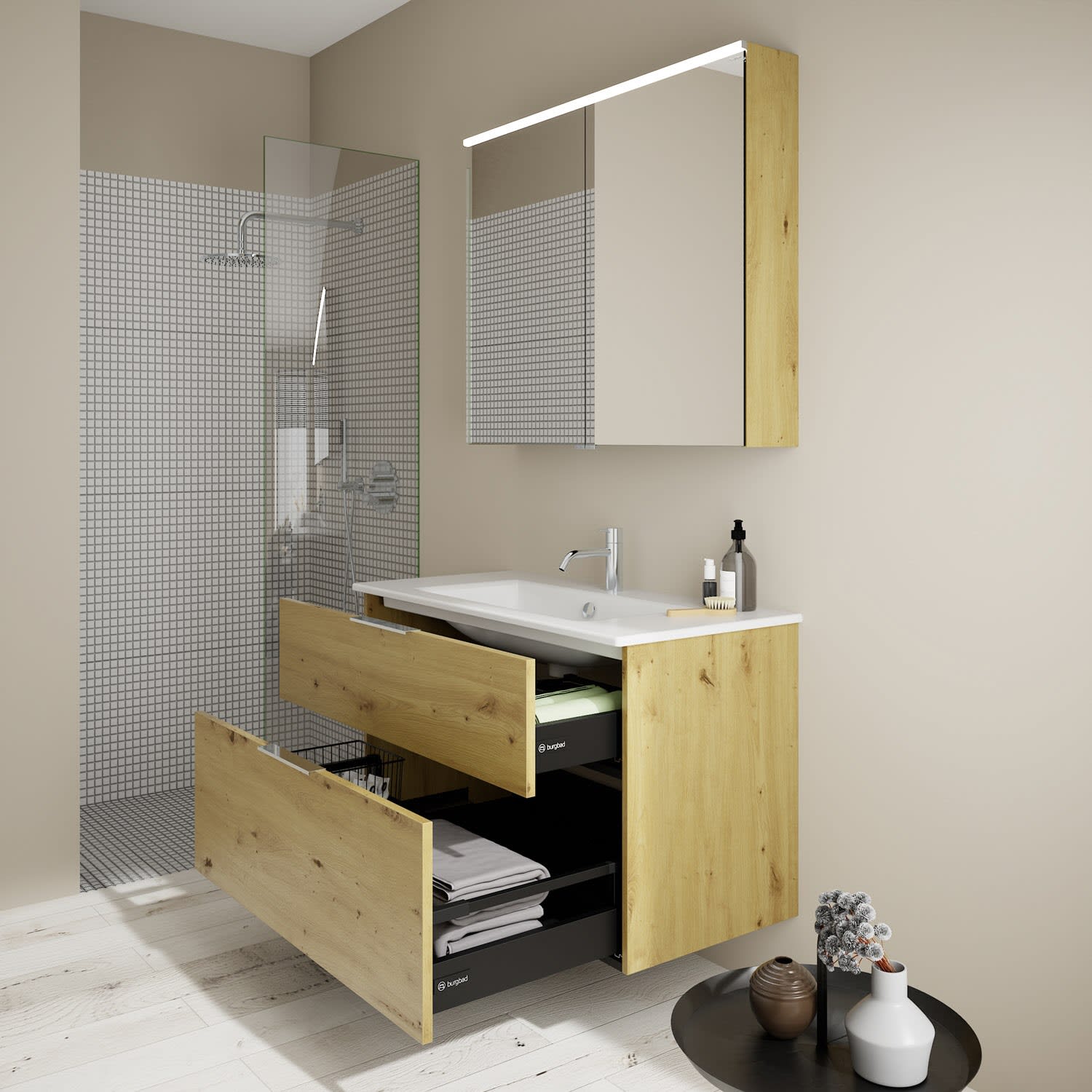 burgbad Eqio Waschtischkombination mit Keramik-Waschtisch Slim, 102 cm, mit Griff G0146