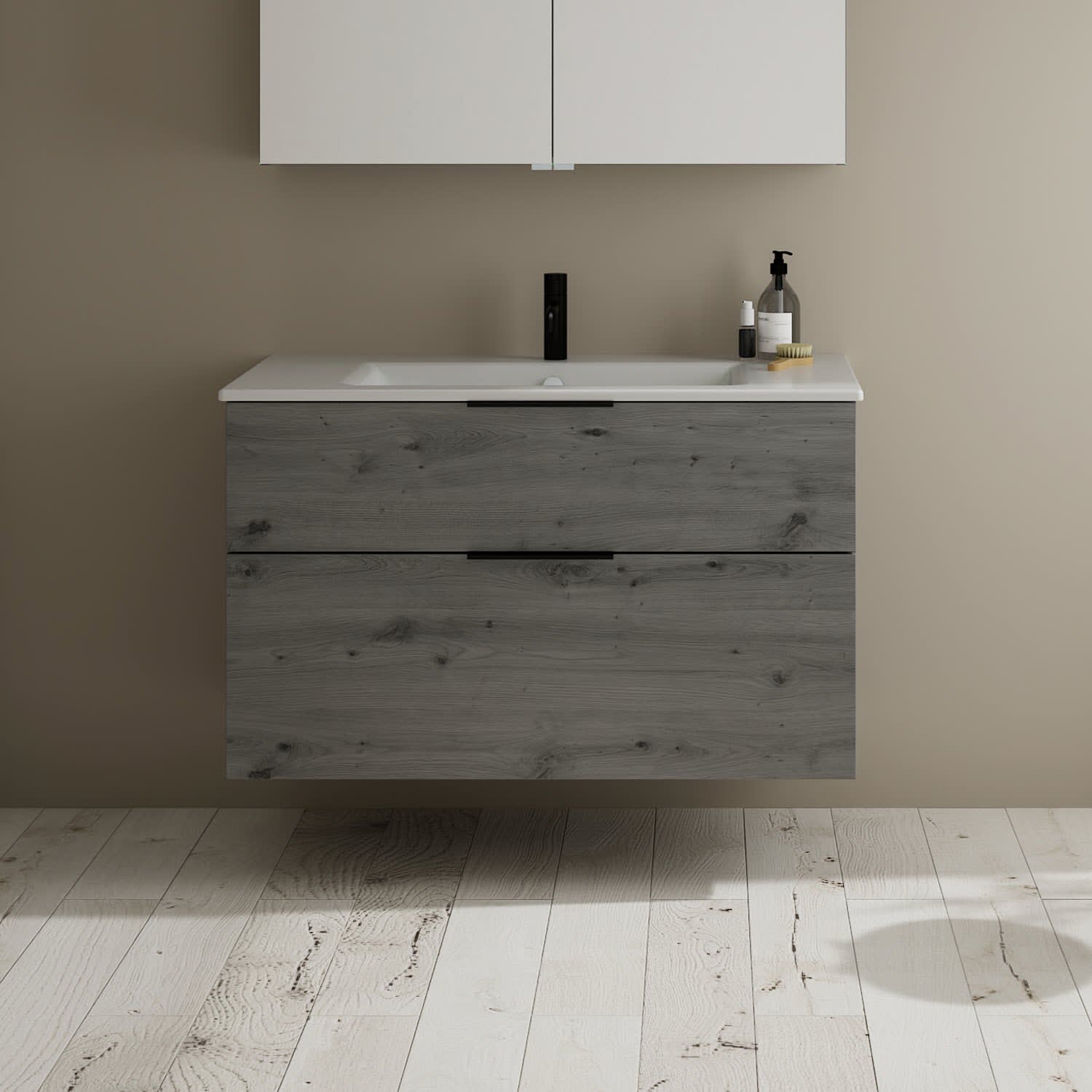 burgbad Eqio Waschtischkombination mit Keramik-Waschtisch Slim, 102 cm, mit Griff G0200
