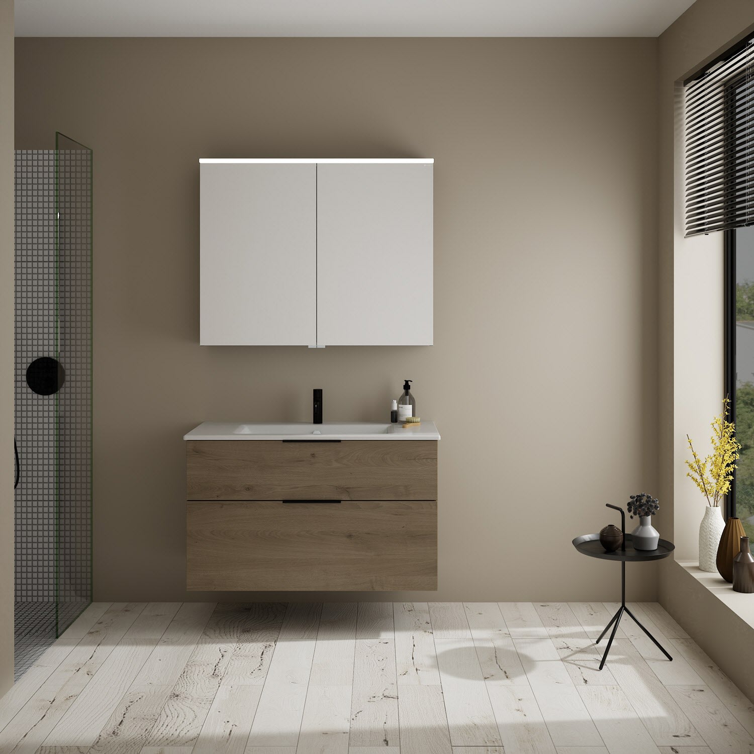 burgbad Eqio Waschtischkombination mit Keramik-Waschtisch Slim, 102 cm, mit Griff G0200