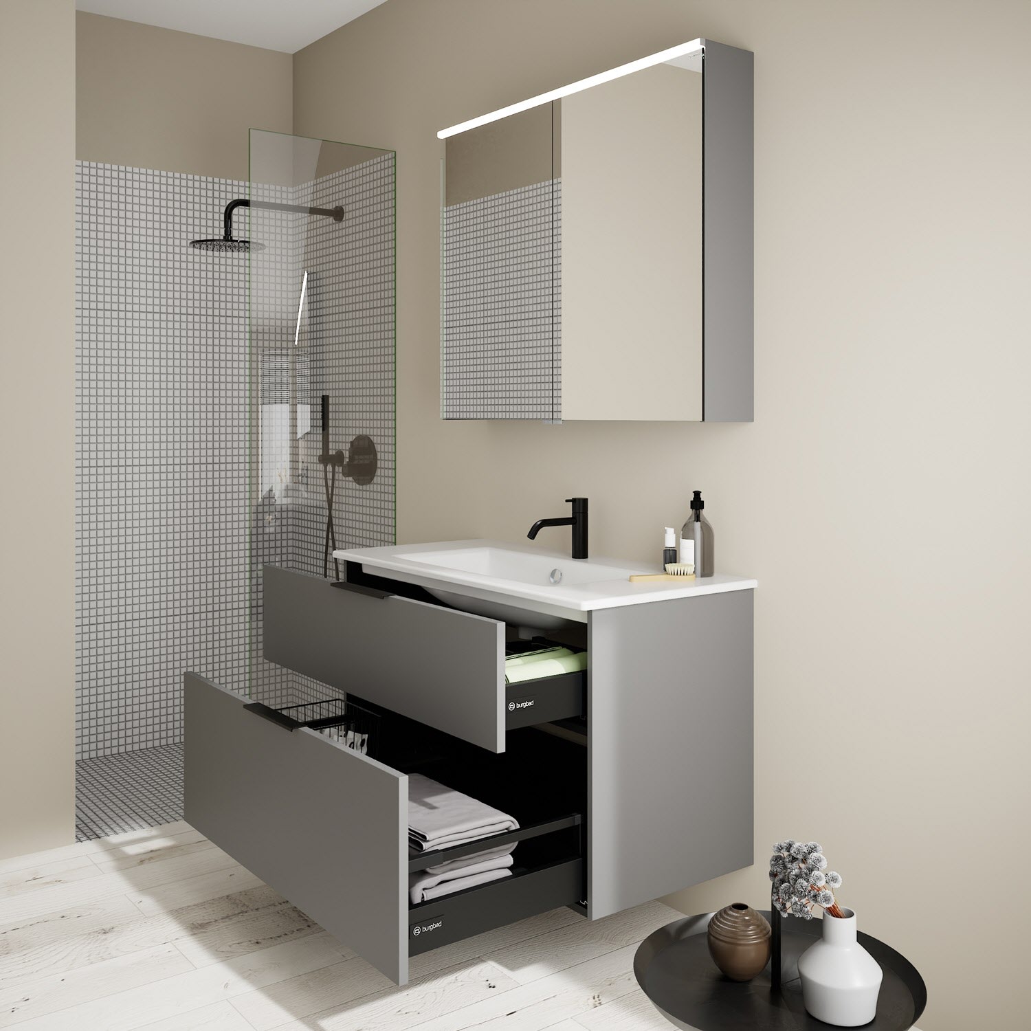 burgbad Eqio Waschtischkombination mit Keramik-Waschtisch Slim, 102 cm, mit Griff G0200