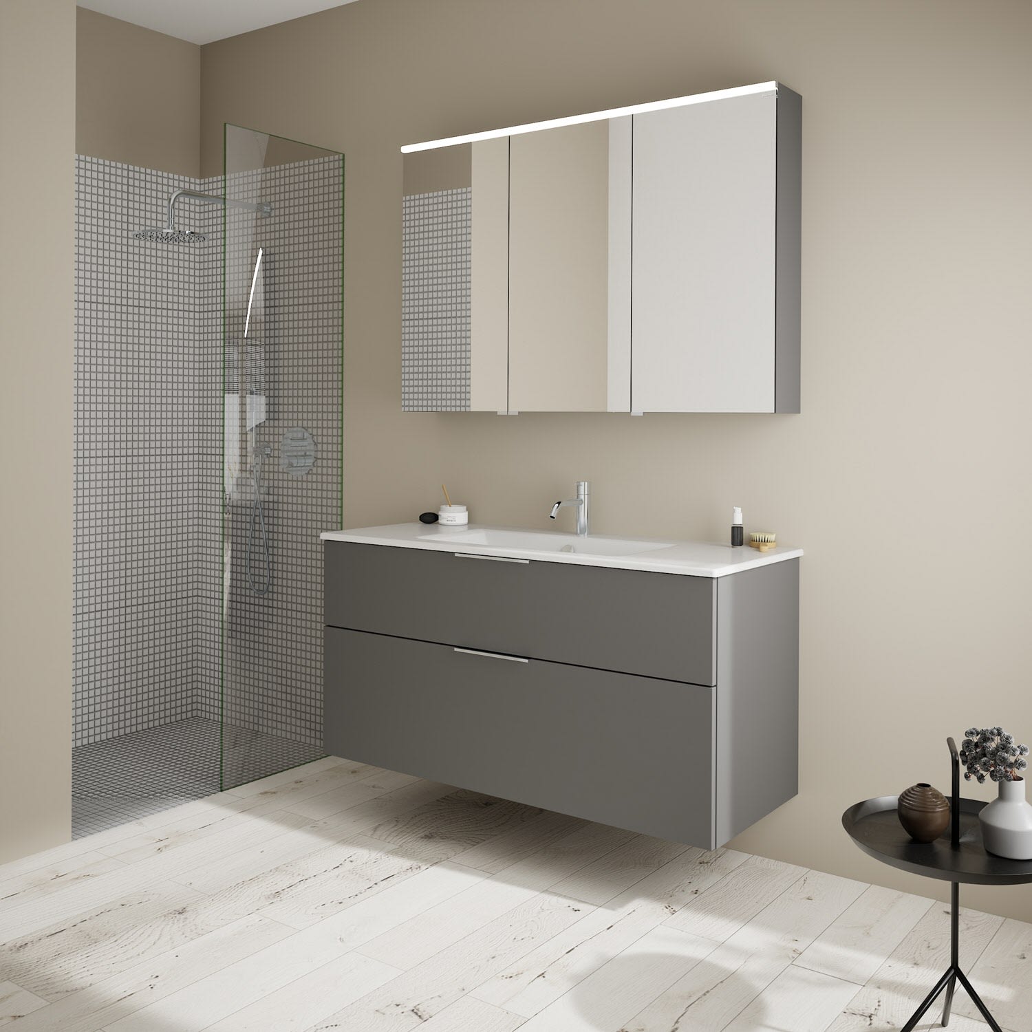 burgbad Eqio Waschtischkombination mit Keramik-Waschtisch Slim, 122 cm, mit Griff G0146