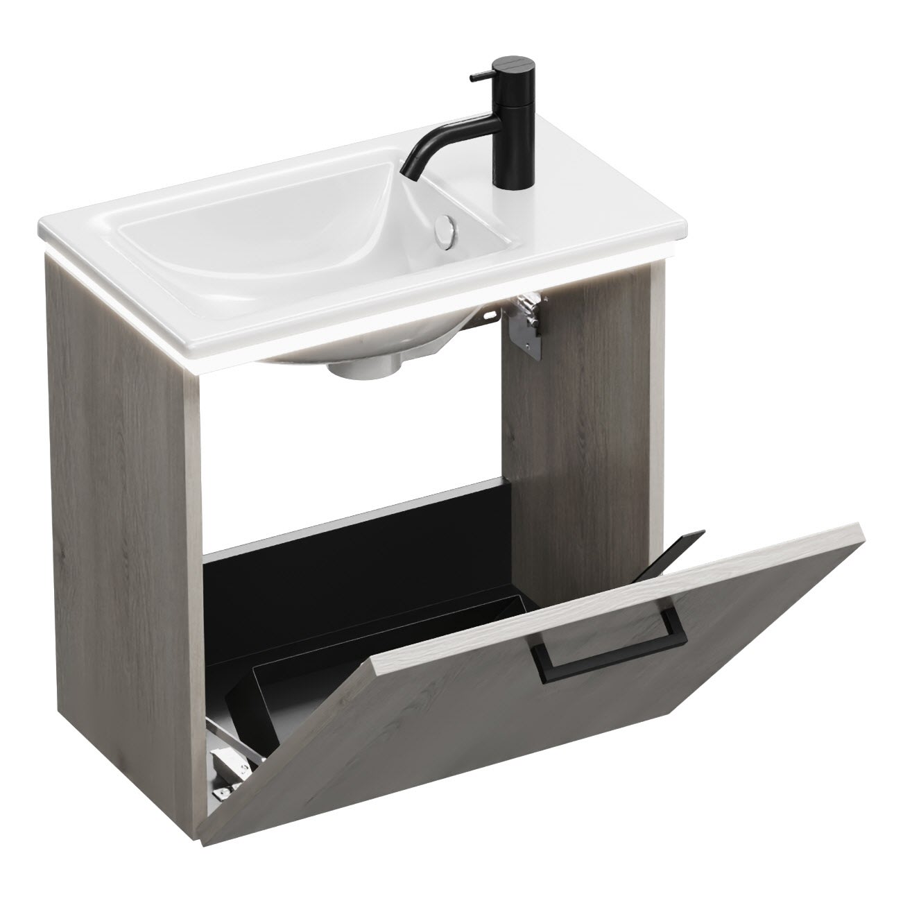 burgbad Eqio Waschtischkombination mit Keramik-Waschtisch Slim und LED-Beleuchtung, 52 cm, mit Stangengriff G0235
