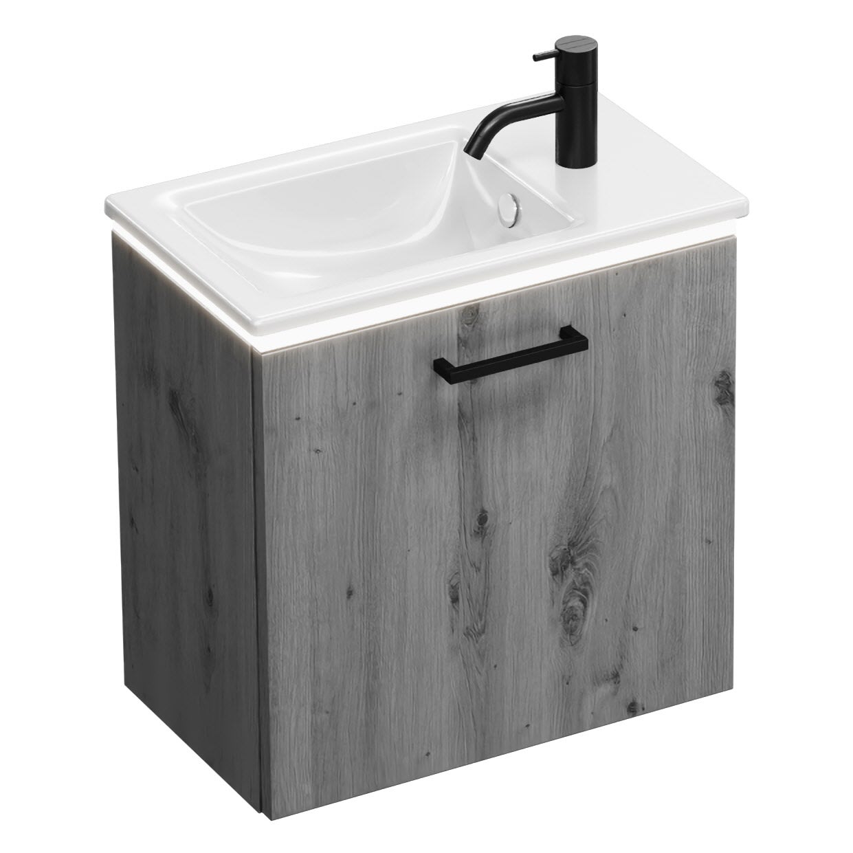 burgbad Eqio Waschtischkombination mit Keramik-Waschtisch Slim und LED-Beleuchtung, 52 cm, mit Stangengriff G0238