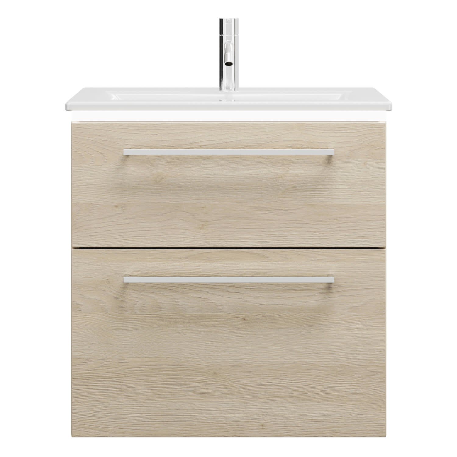 burgbad Eqio Waschtischkombination mit Keramik-Waschtisch Slim und LED-Beleuchtung, 62 cm, mit Stangengriff P95
