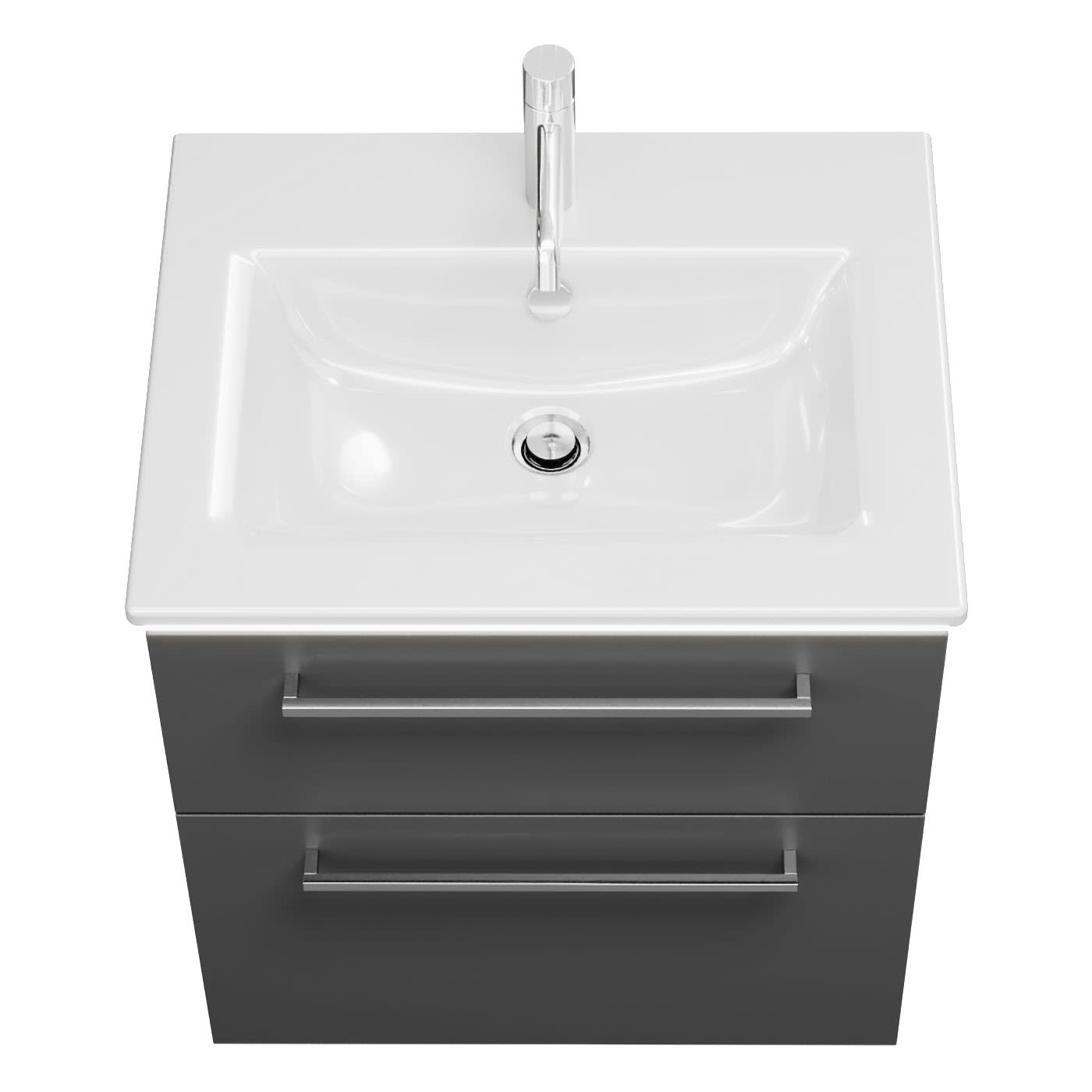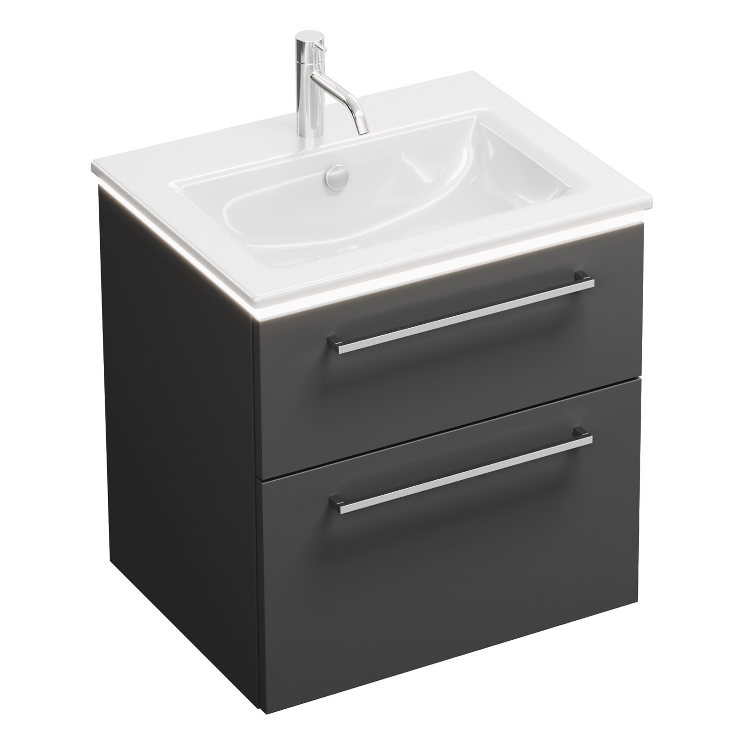 burgbad Eqio Waschtischkombination mit Keramik-Waschtisch Slim und LED-Beleuchtung, 62 cm, mit Stangengriff P95