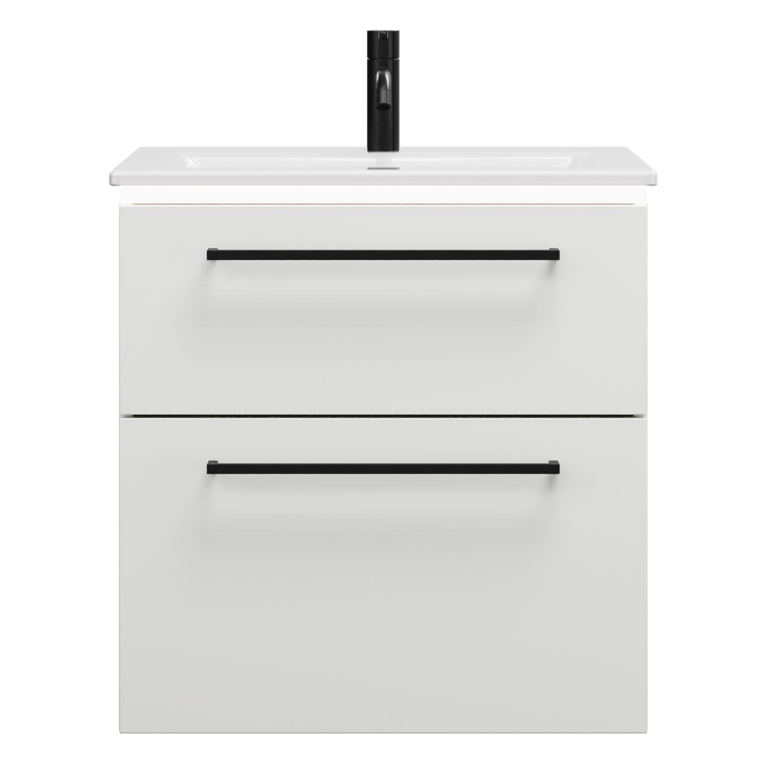 burgbad Eqio Waschtischkombination mit Keramik-Waschtisch Slim und LED-Beleuchtung, 62 cm, mit Stangengriff G0234