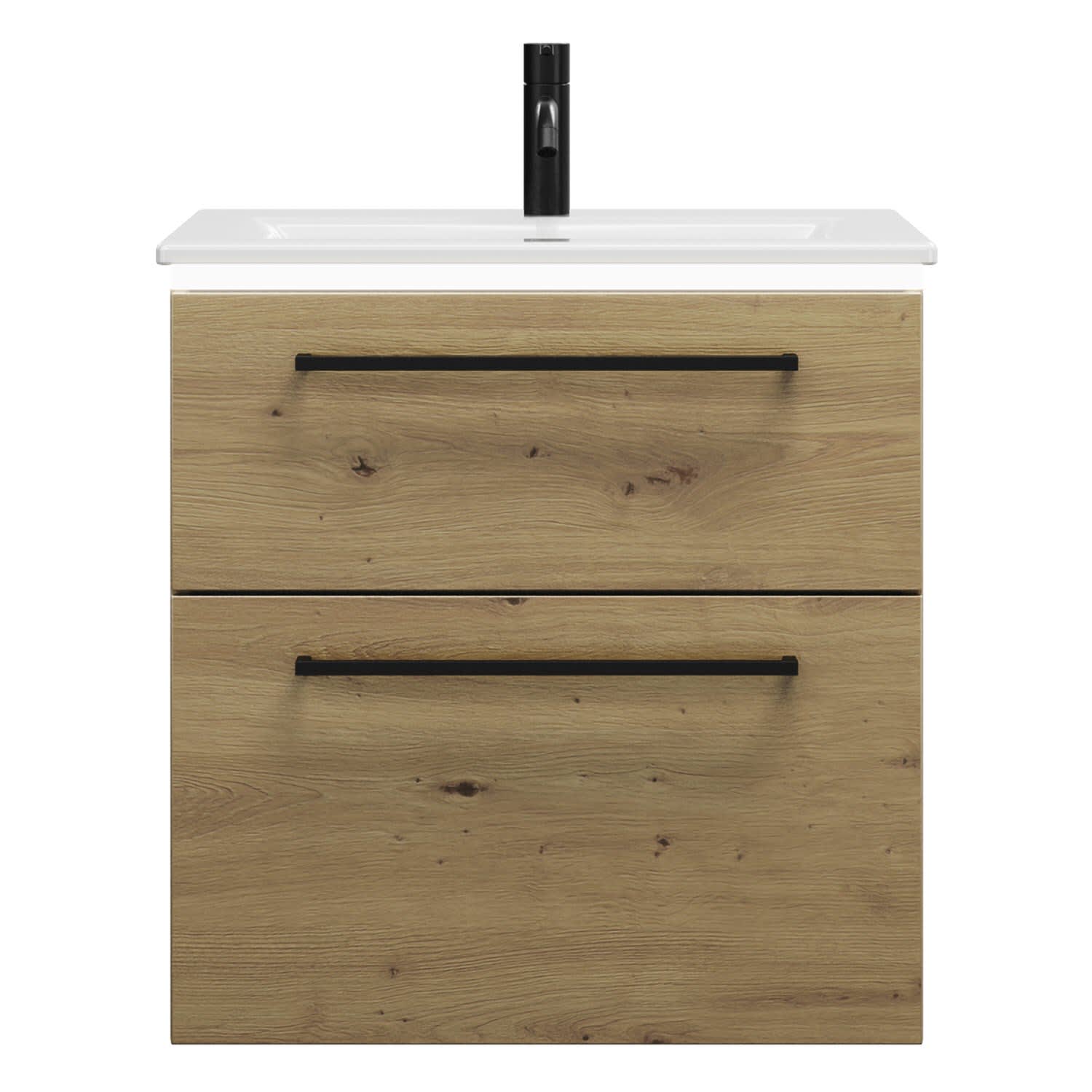 burgbad Eqio Waschtischkombination mit Keramik-Waschtisch Slim und LED-Beleuchtung, 62 cm, mit Stangengriff G0234