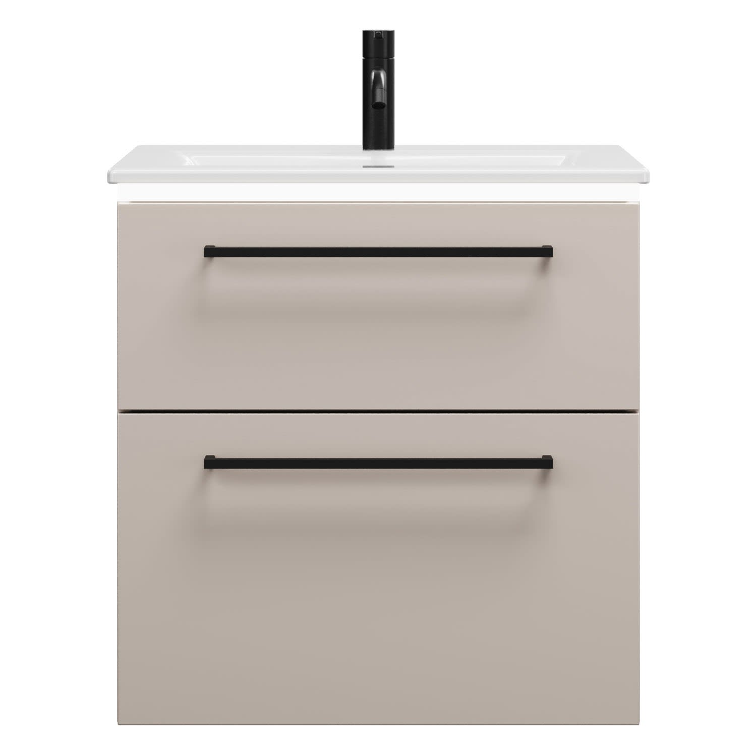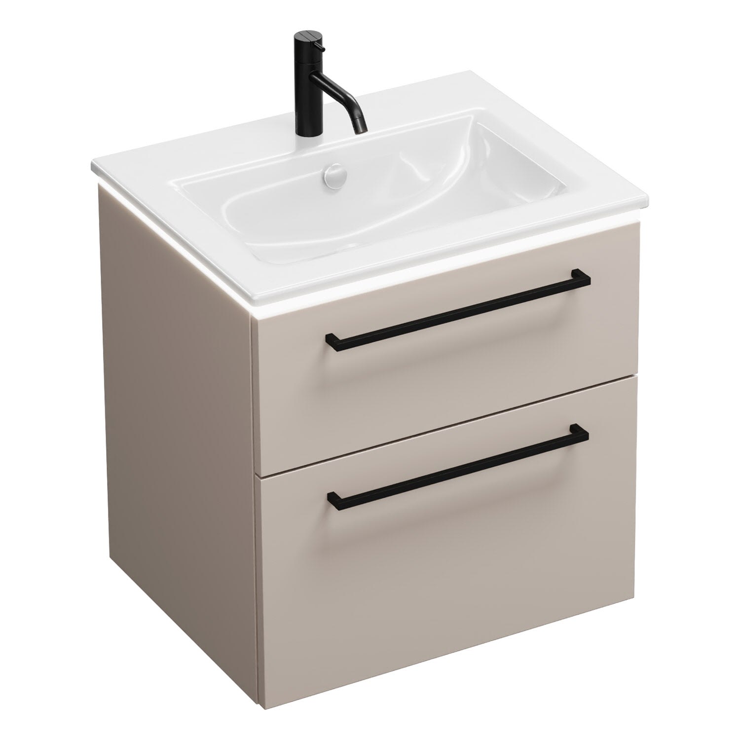 burgbad Eqio Waschtischkombination mit Keramik-Waschtisch Slim und LED-Beleuchtung, 62 cm, mit Stangengriff G0234