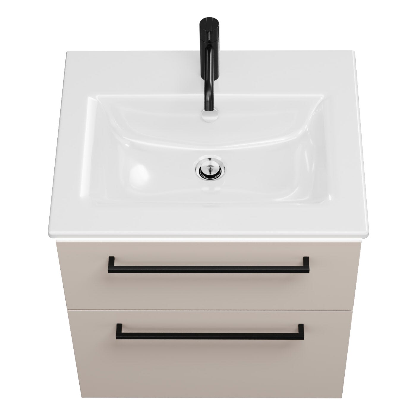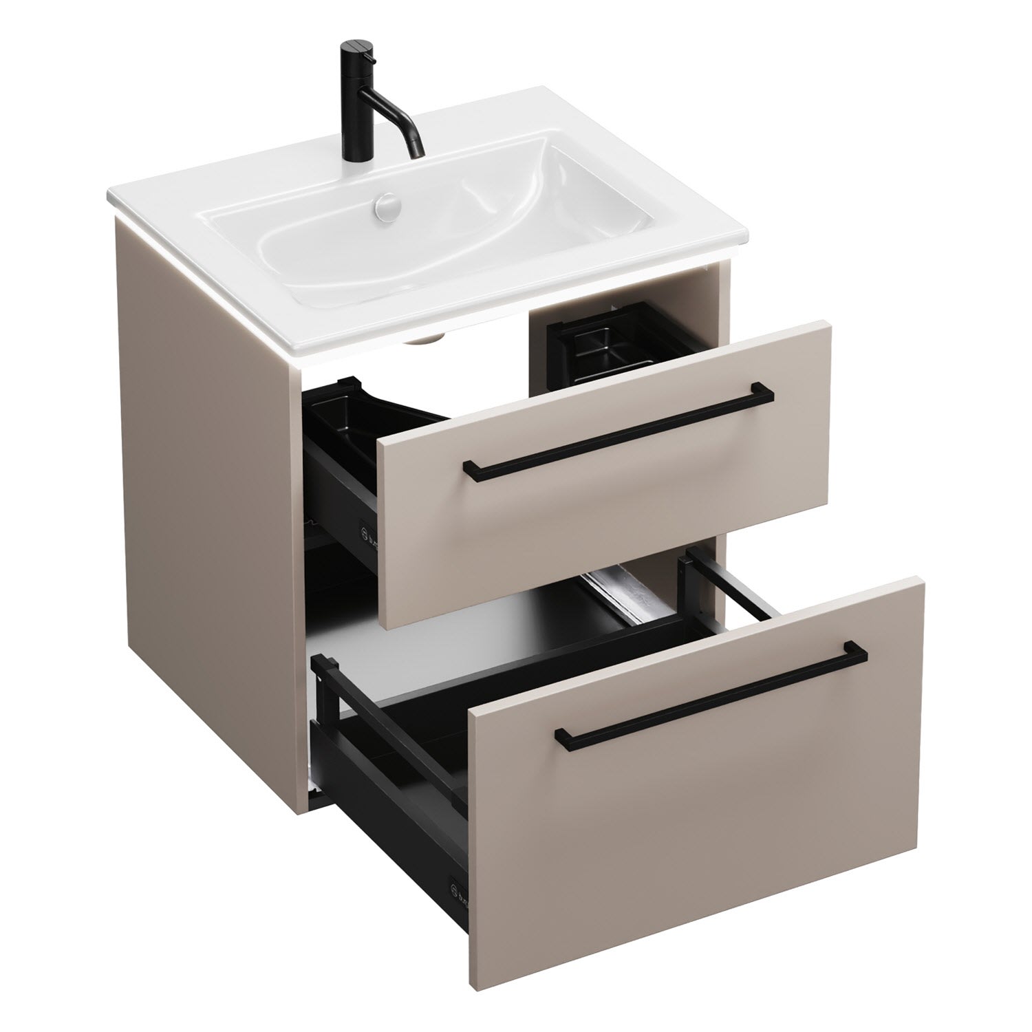 - 1 Schublade oben, 35 cm tief, mit Siphonausschnitt und Inneneinteilung