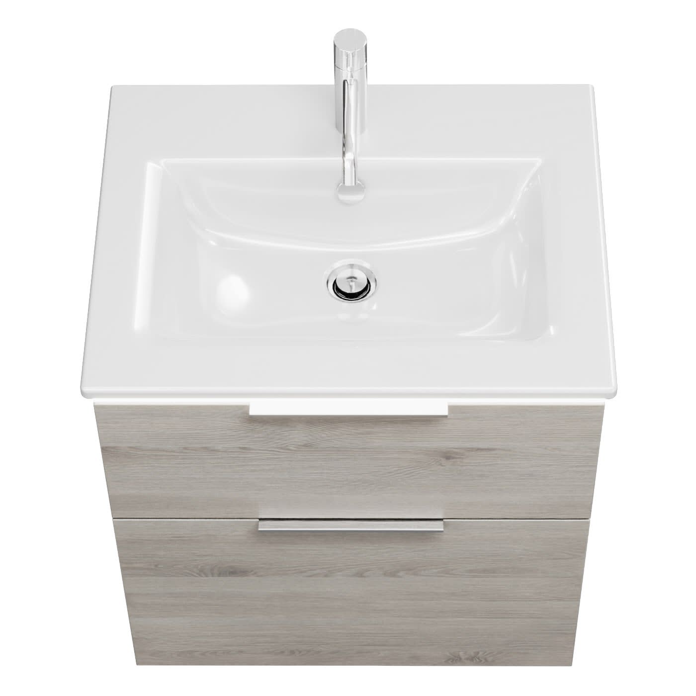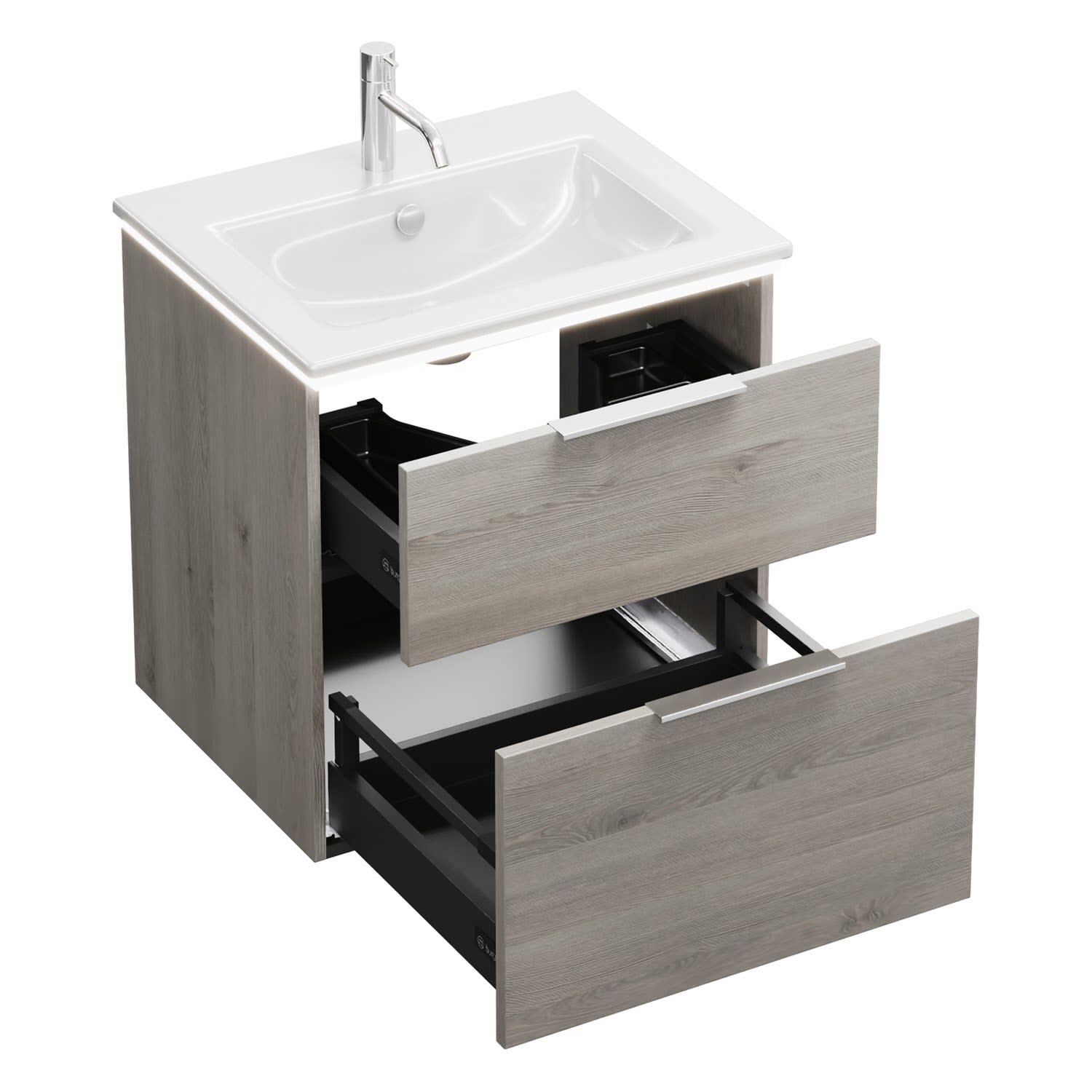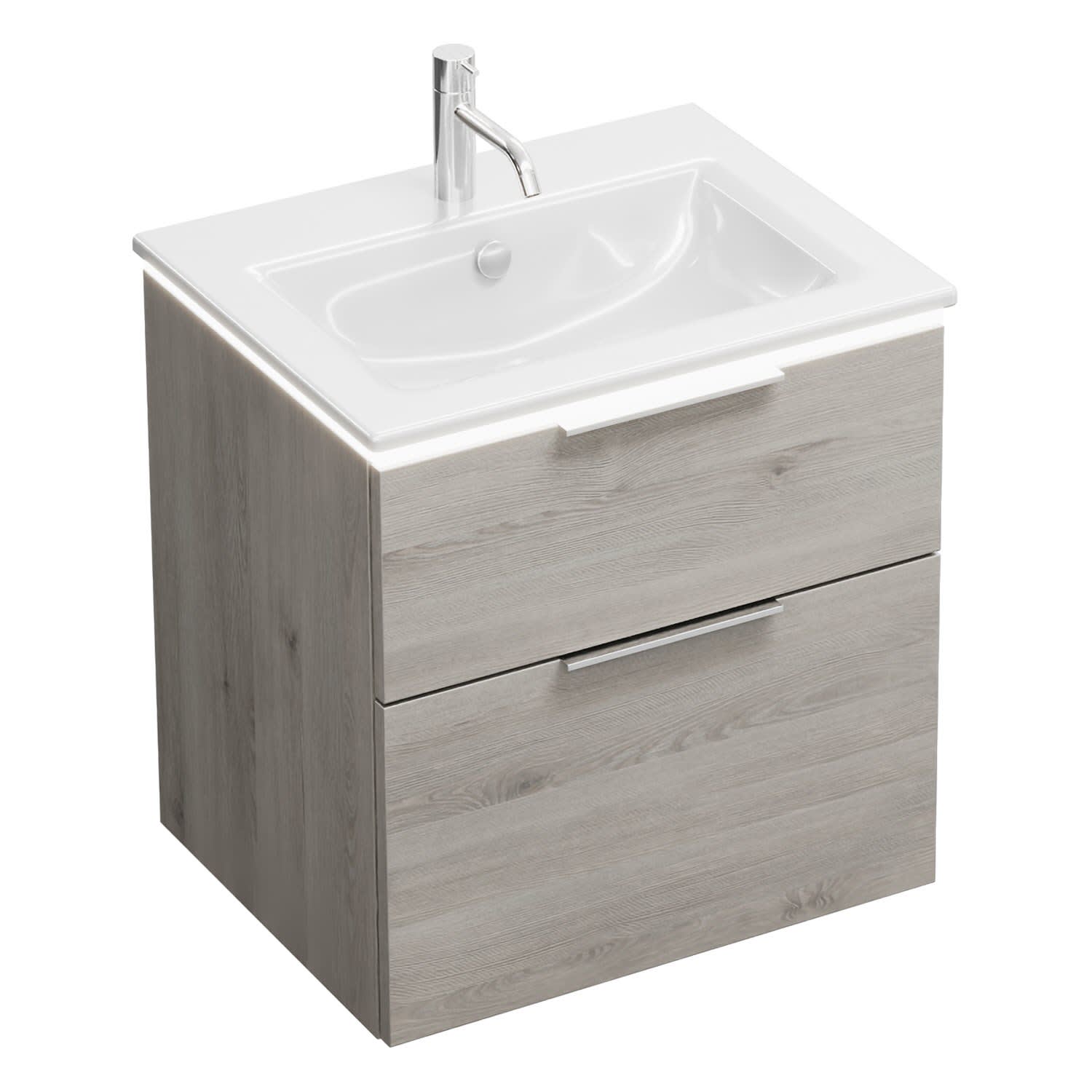 burgbad Eqio Waschtischkombination mit Keramik-Waschtisch Slim und LED-Beleuchtung, 62 cm, mit Griff G0146