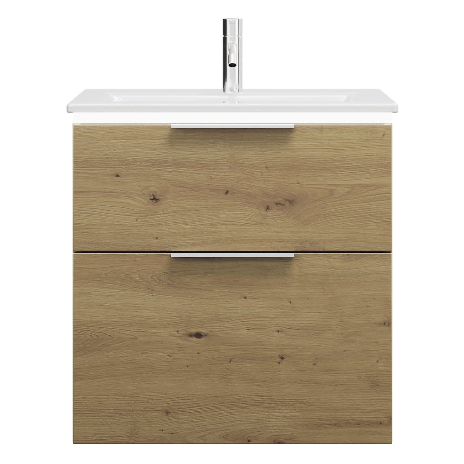 burgbad Eqio Waschtischkombination mit Keramik-Waschtisch Slim und LED-Beleuchtung, 62 cm, mit Griff G0146