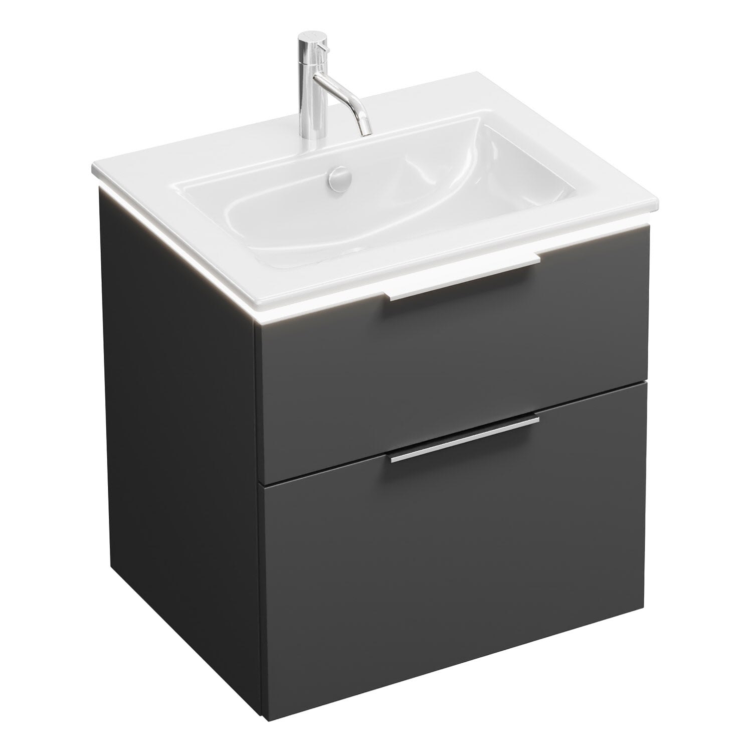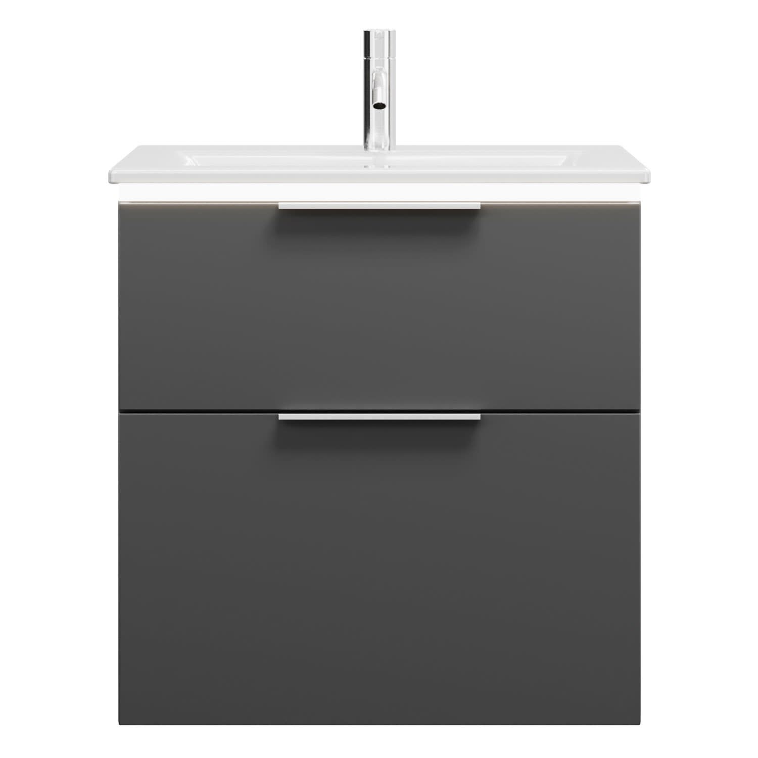 burgbad Eqio Waschtischkombination mit Keramik-Waschtisch Slim und LED-Beleuchtung, 62 cm, mit Griff G0146
