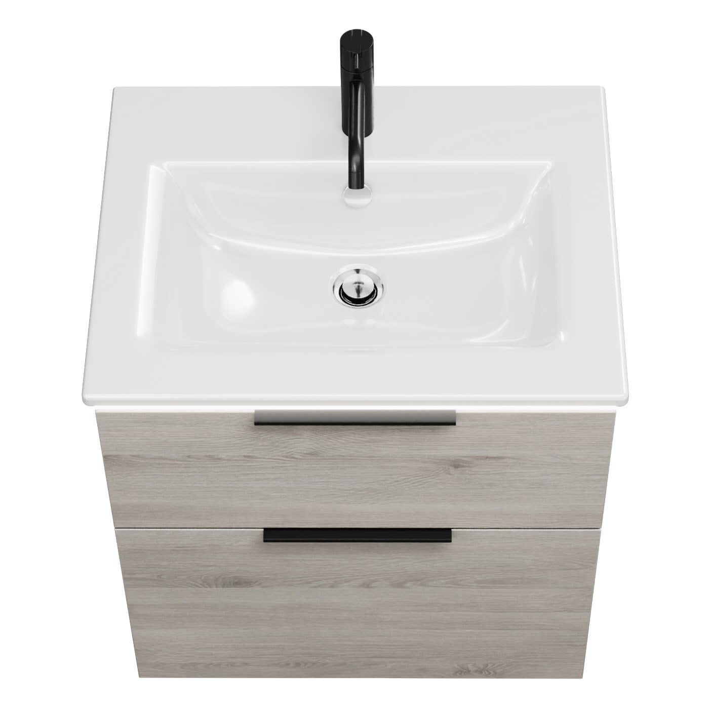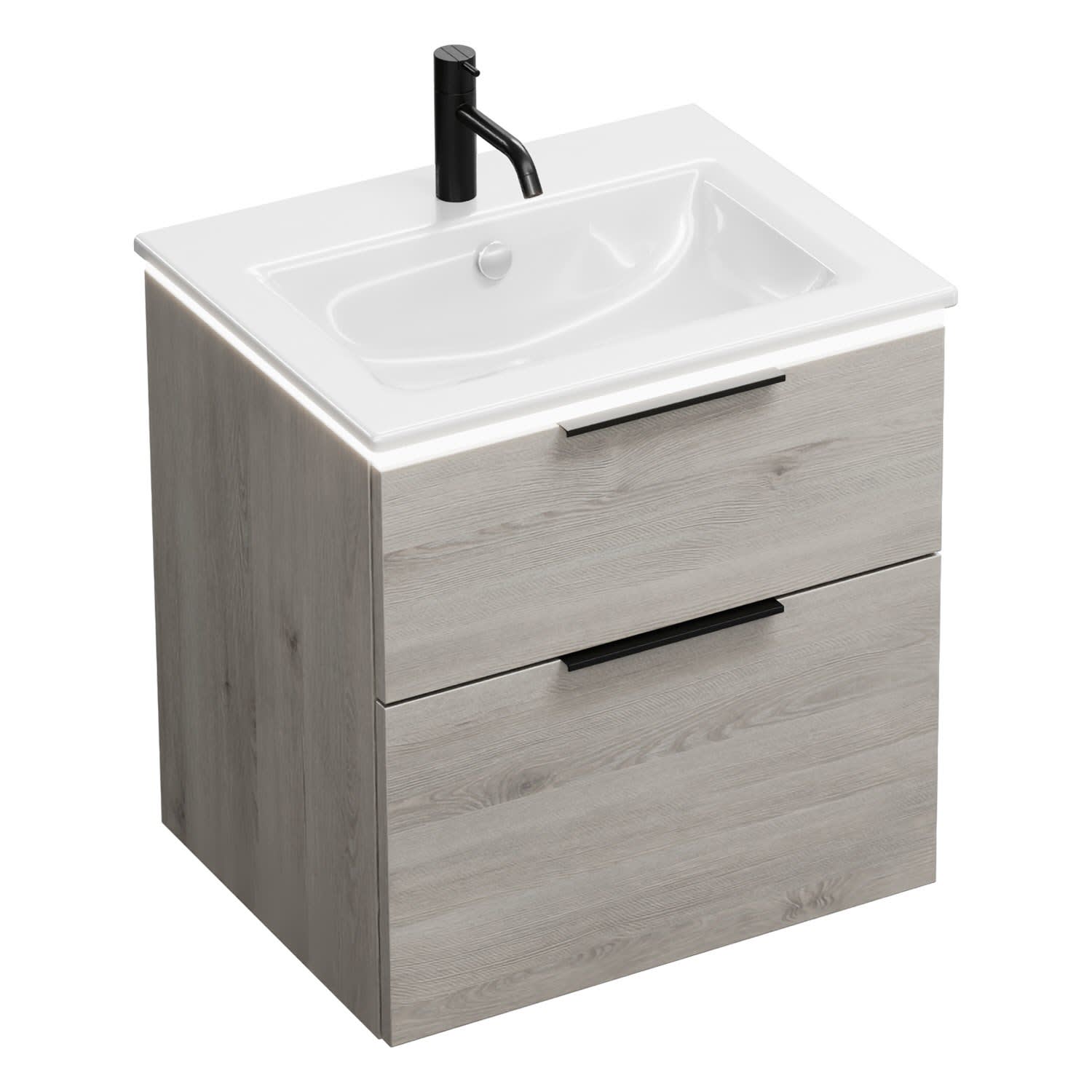burgbad Eqio Waschtischkombination mit Keramik-Waschtisch Slim und LED-Beleuchtung, 62 cm, mit Griff G0200