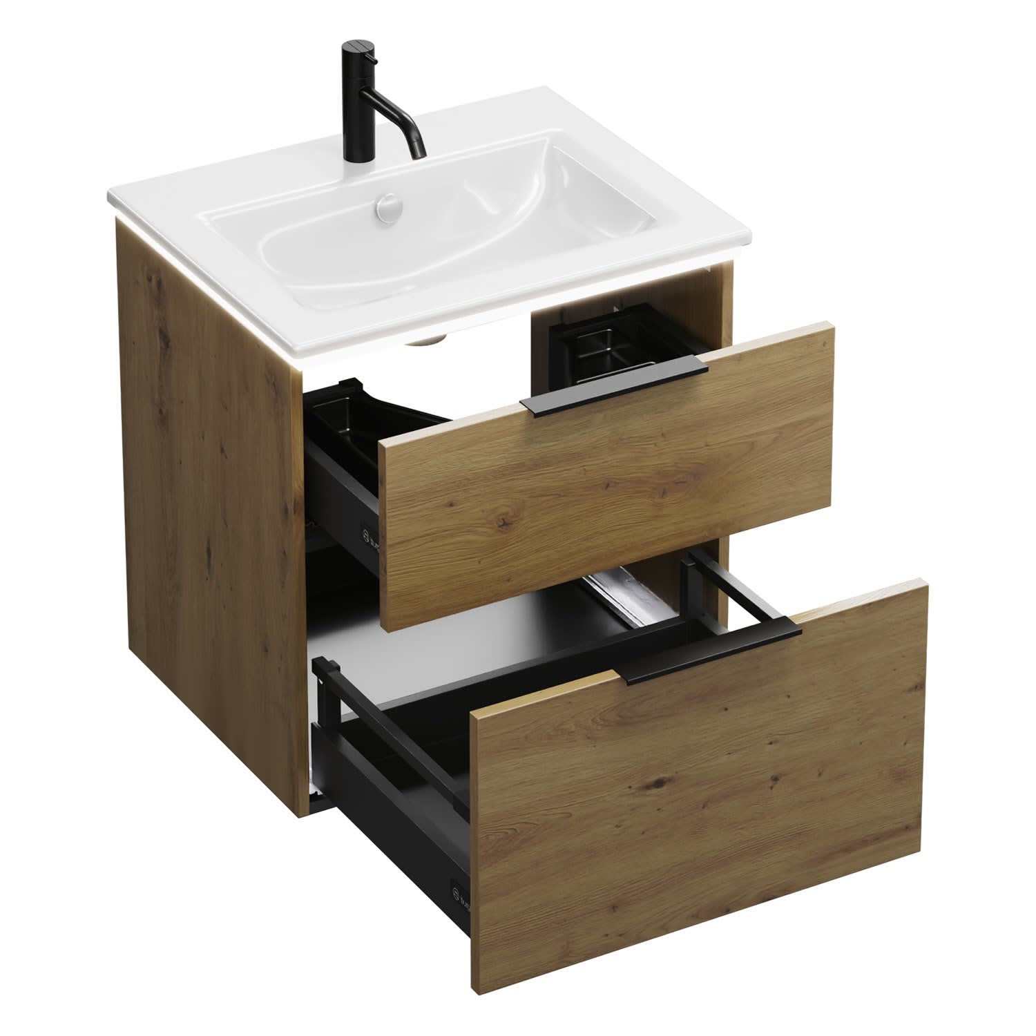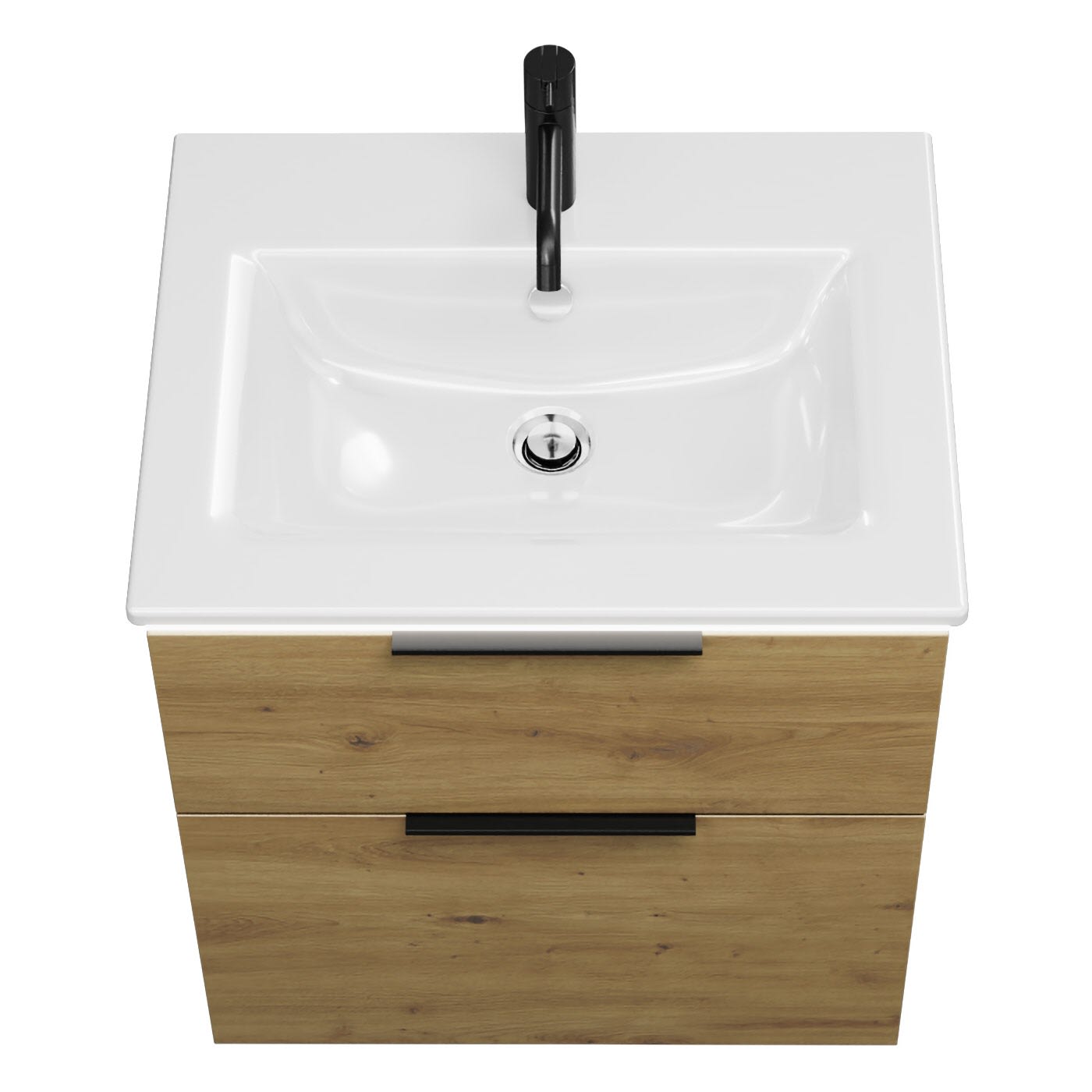 burgbad Eqio Waschtischkombination mit Keramik-Waschtisch Slim und LED-Beleuchtung, 62 cm, mit Griff G0200