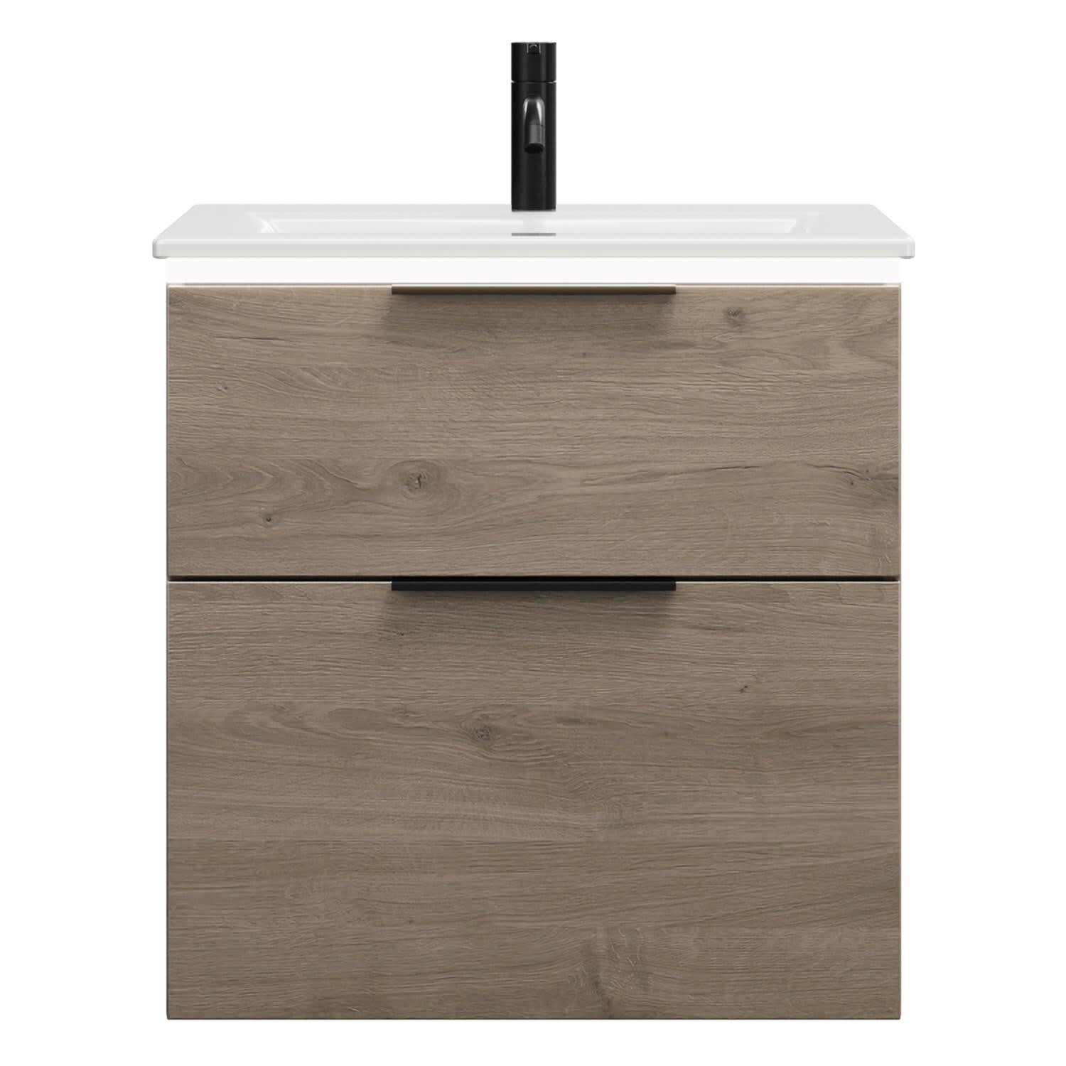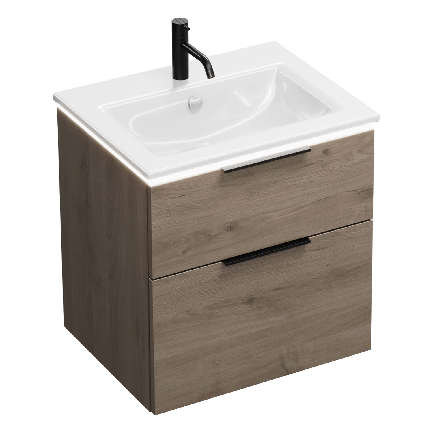 burgbad Eqio Waschtischkombination mit Keramik-Waschtisch Slim und LED-Beleuchtung, 62 cm, mit Griff G0200