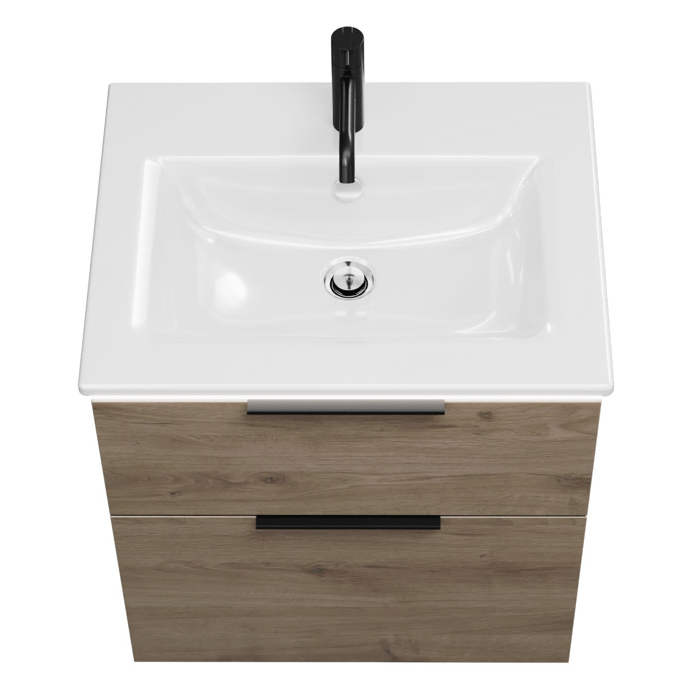 - 1 Schublade oben, 35 cm tief, mit Siphonausschnitt und Inneneinteilung