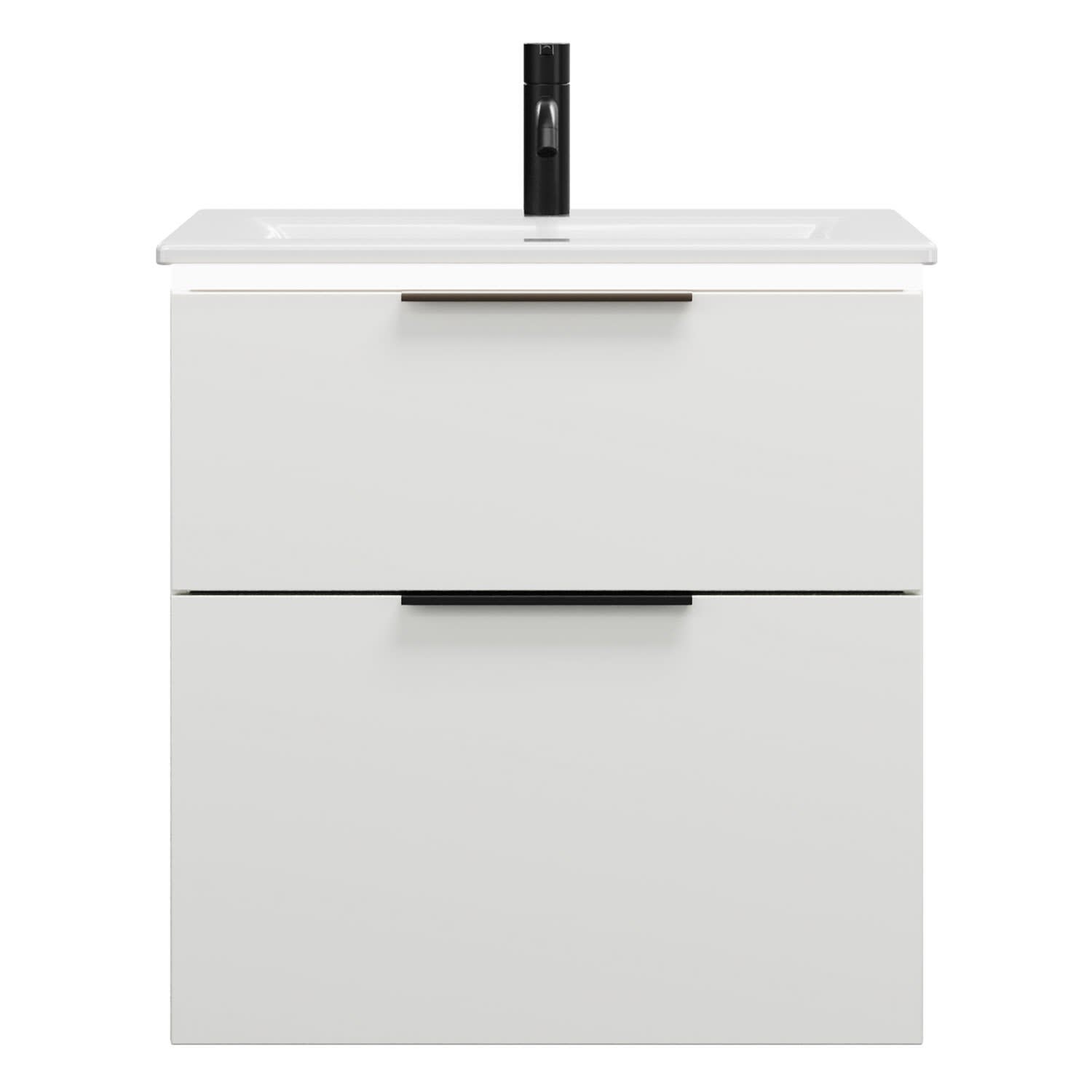 burgbad Eqio Waschtischkombination mit Keramik-Waschtisch Slim und LED-Beleuchtung, 62 cm, mit Griff G0200