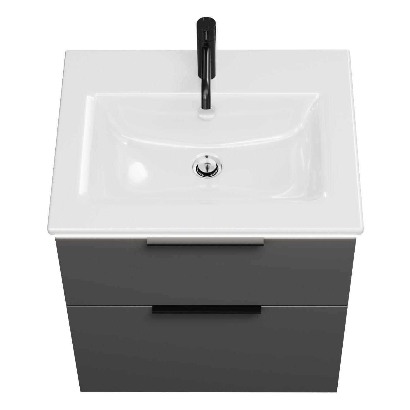 burgbad Eqio Waschtischkombination mit Keramik-Waschtisch Slim und LED-Beleuchtung, 62 cm, mit Griff G0200