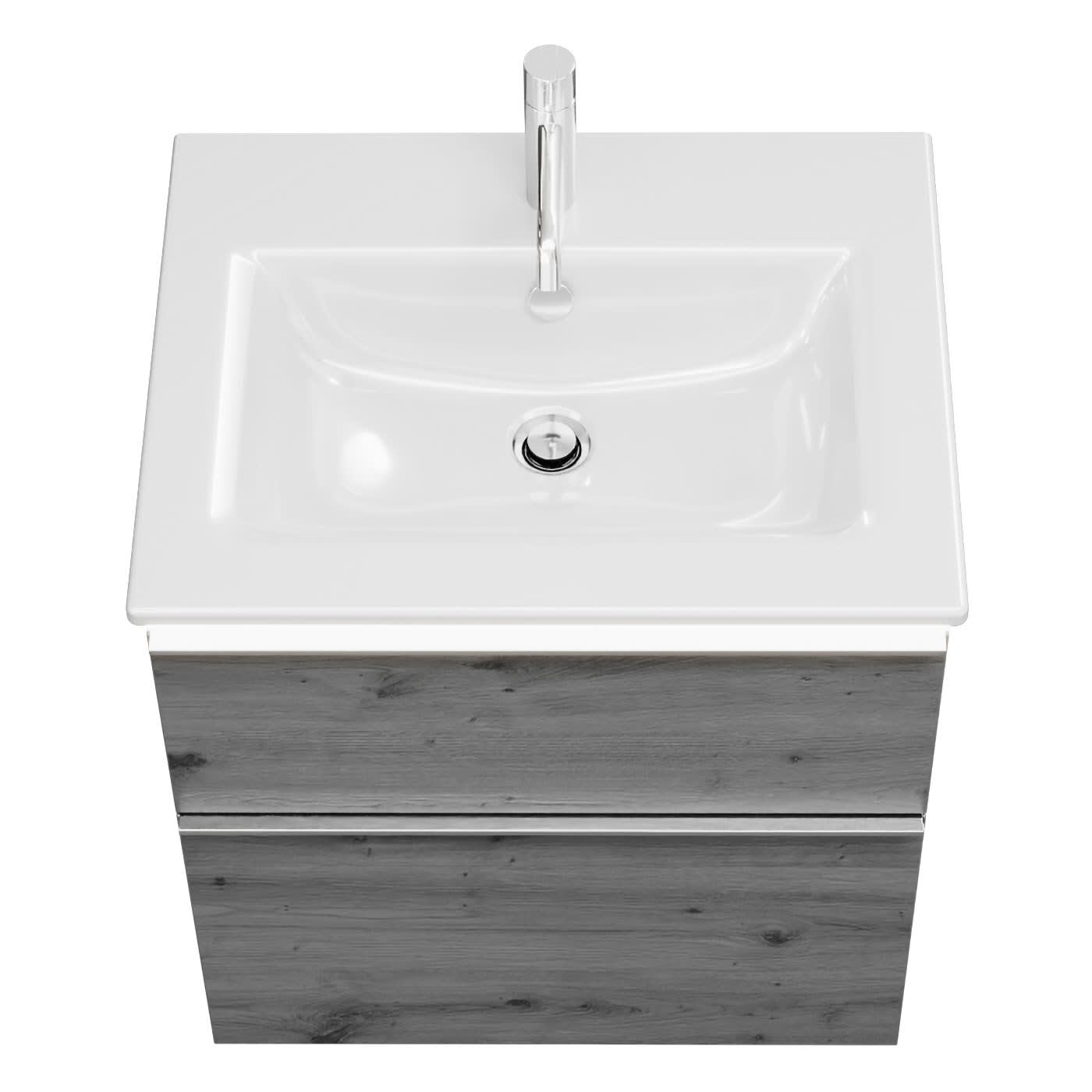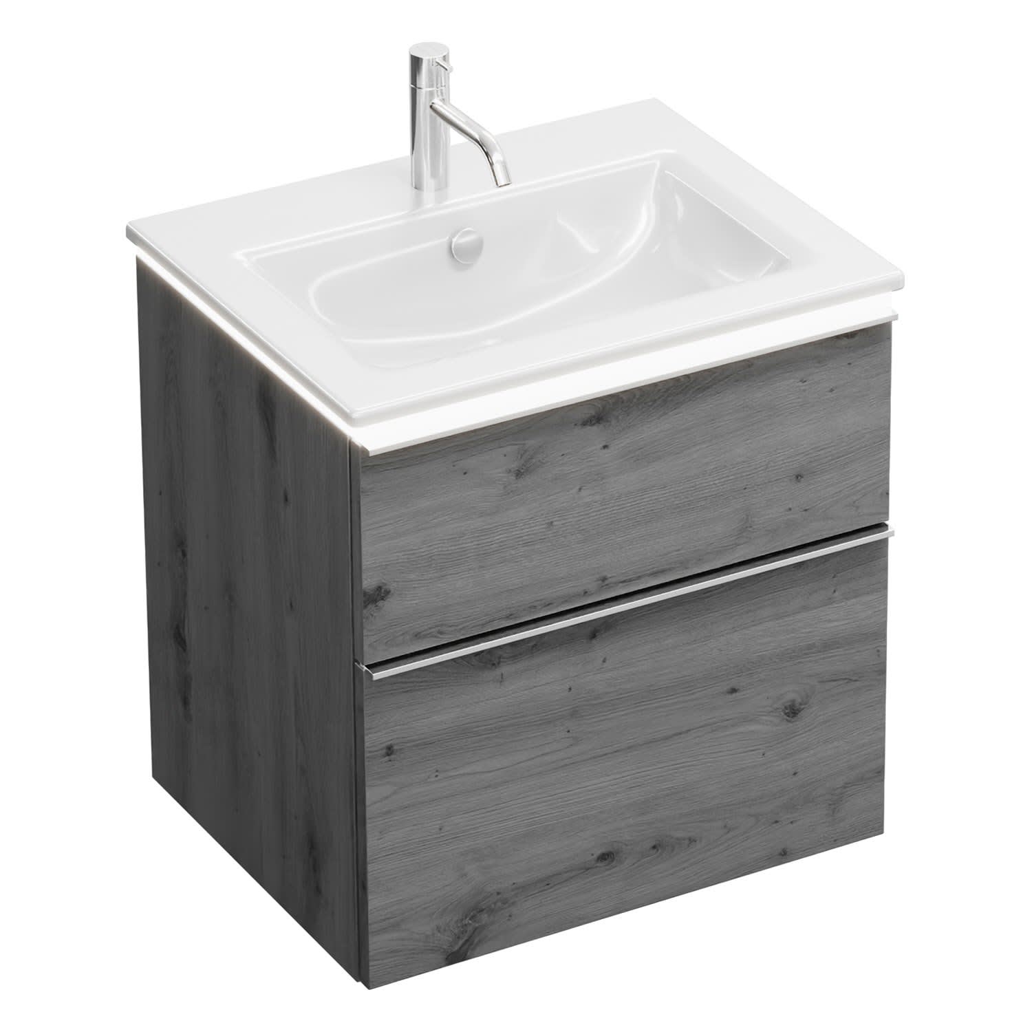 burgbad Eqio Waschtischkombination mit Keramik-Waschtisch Slim und LED-Beleuchtung, 62 cm, mit Griffleiste G0251