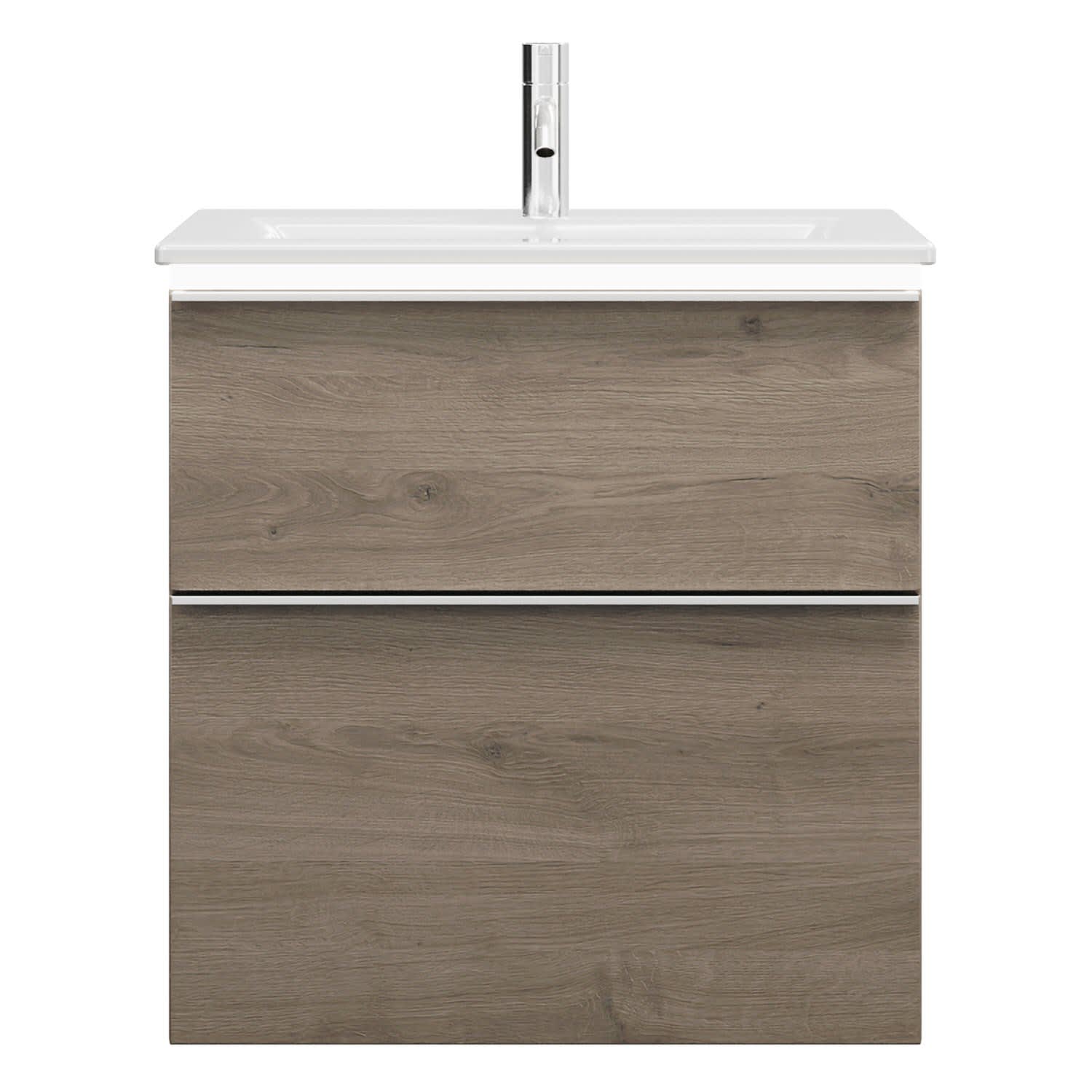 burgbad Eqio Waschtischkombination mit Keramik-Waschtisch Slim und LED-Beleuchtung, 62 cm, mit Griffleiste G0251
