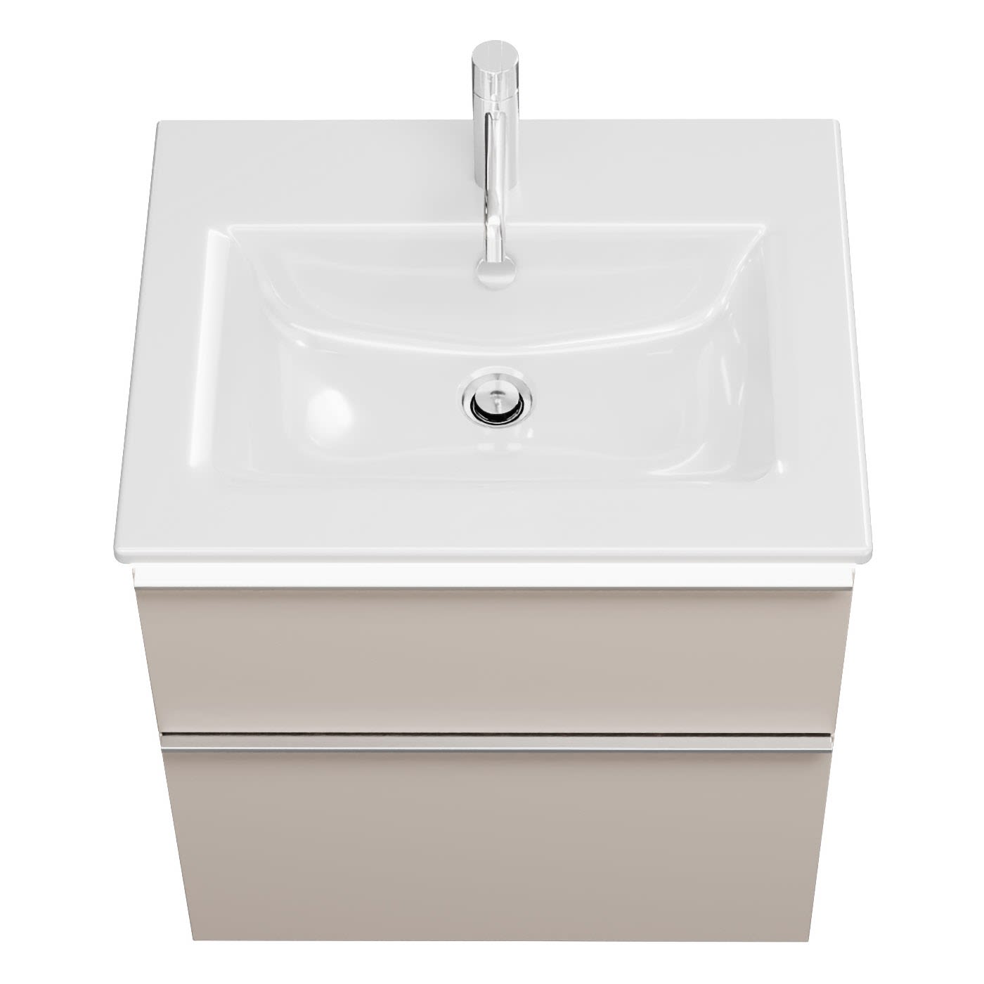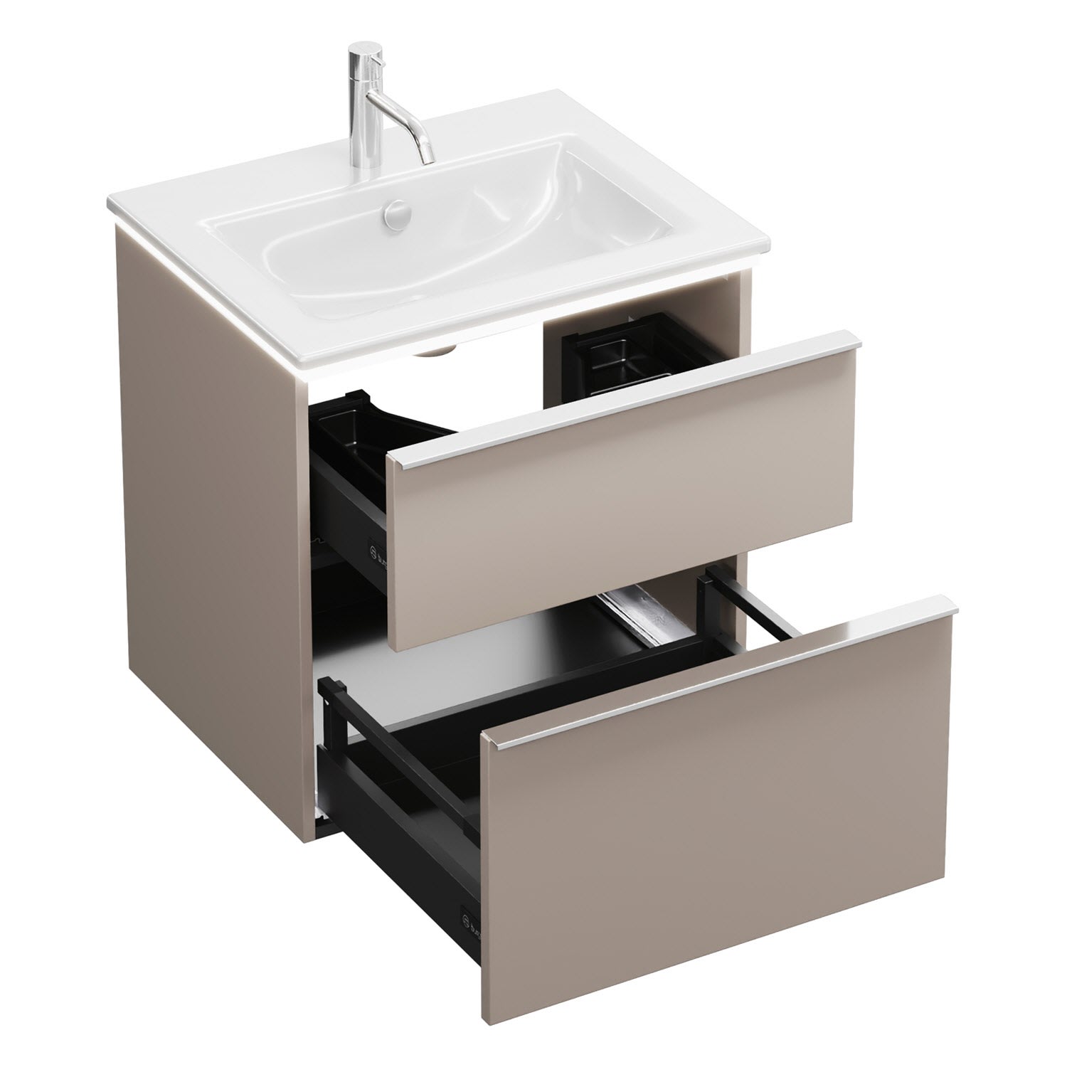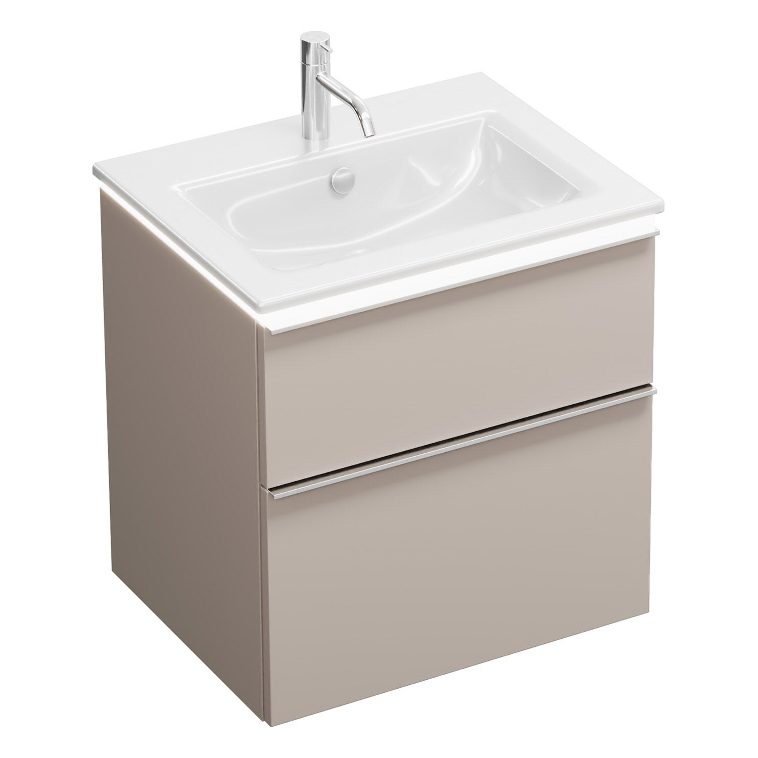 burgbad Eqio Waschtischkombination mit Keramik-Waschtisch Slim und LED-Beleuchtung, 62 cm, mit Griffleiste G0251