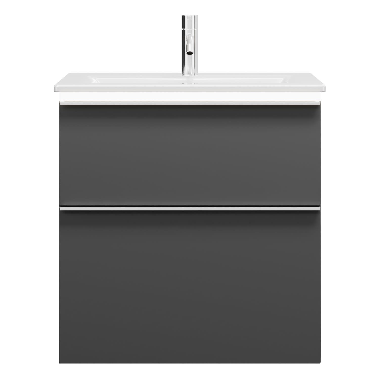burgbad Eqio Waschtischkombination mit Keramik-Waschtisch Slim und LED-Beleuchtung, 62 cm, mit Griffleiste G0251