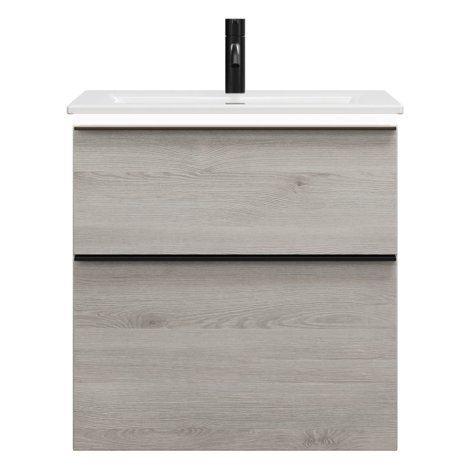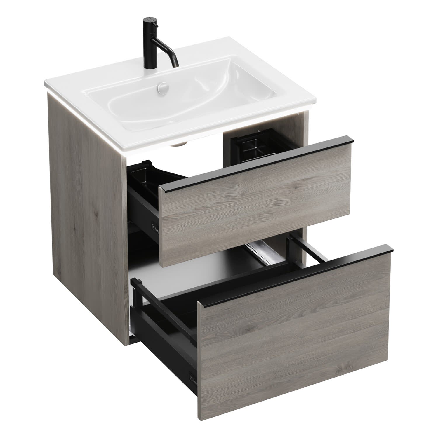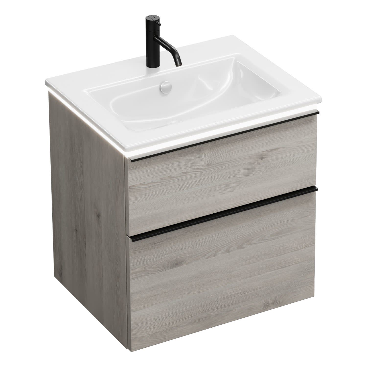 burgbad Eqio Waschtischkombination mit Keramik-Waschtisch Slim und LED-Beleuchtung, 62 cm, mit Griffleiste G0252