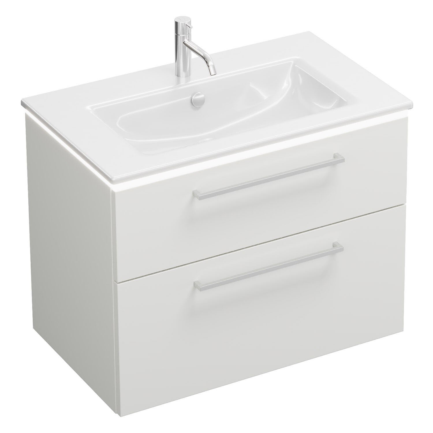 burgbad Eqio Waschtischkombination mit Keramik-Waschtisch Slim und LED-Beleuchtung, 82 cm, mit Stangengriff P95