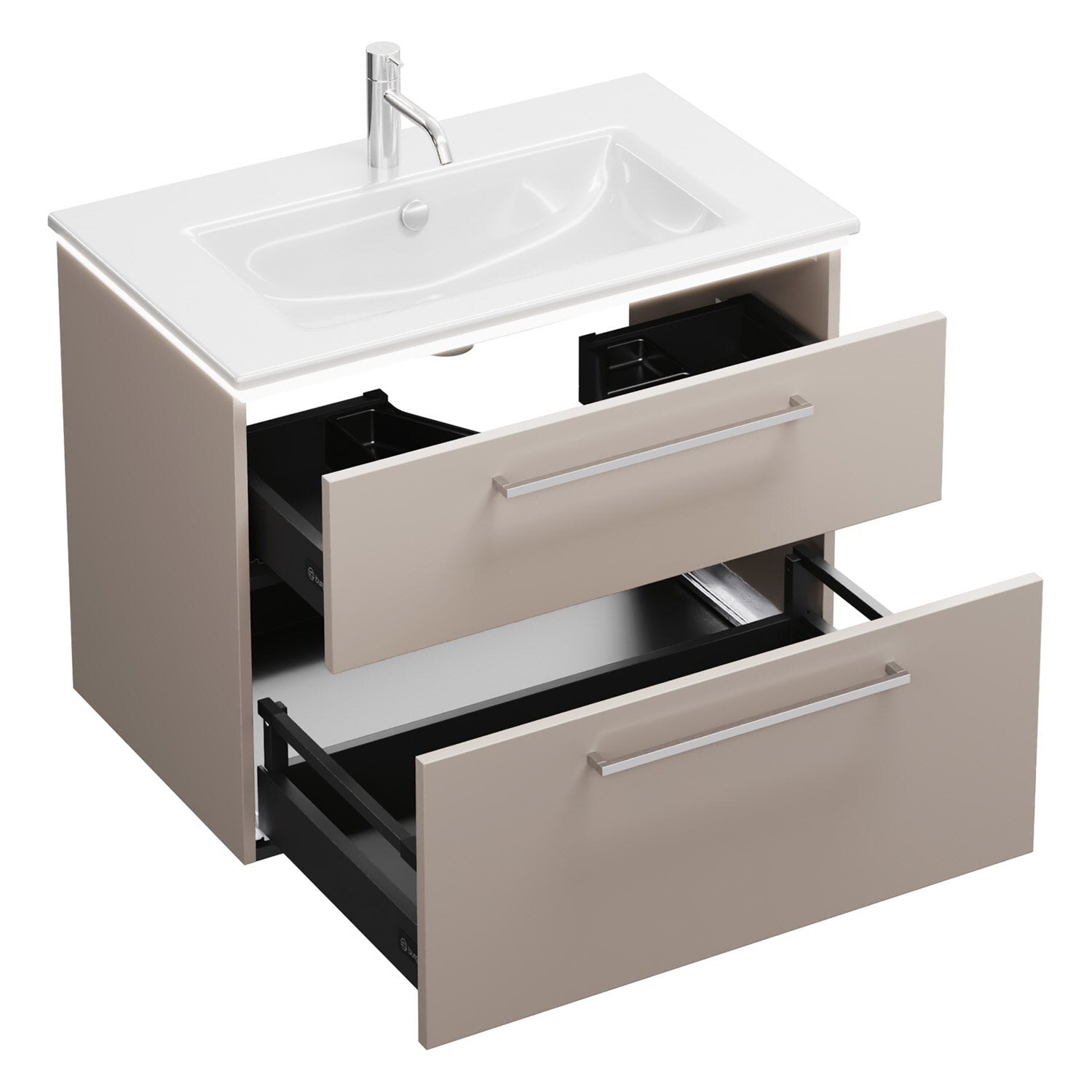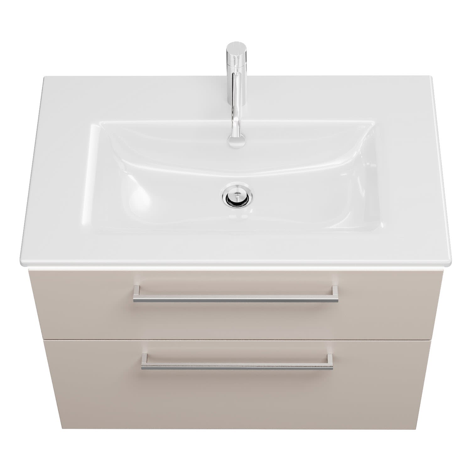 burgbad Eqio Waschtischkombination mit Keramik-Waschtisch Slim und LED-Beleuchtung, 82 cm, mit Stangengriff P95