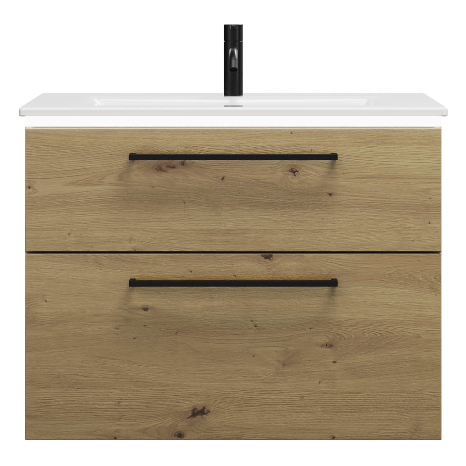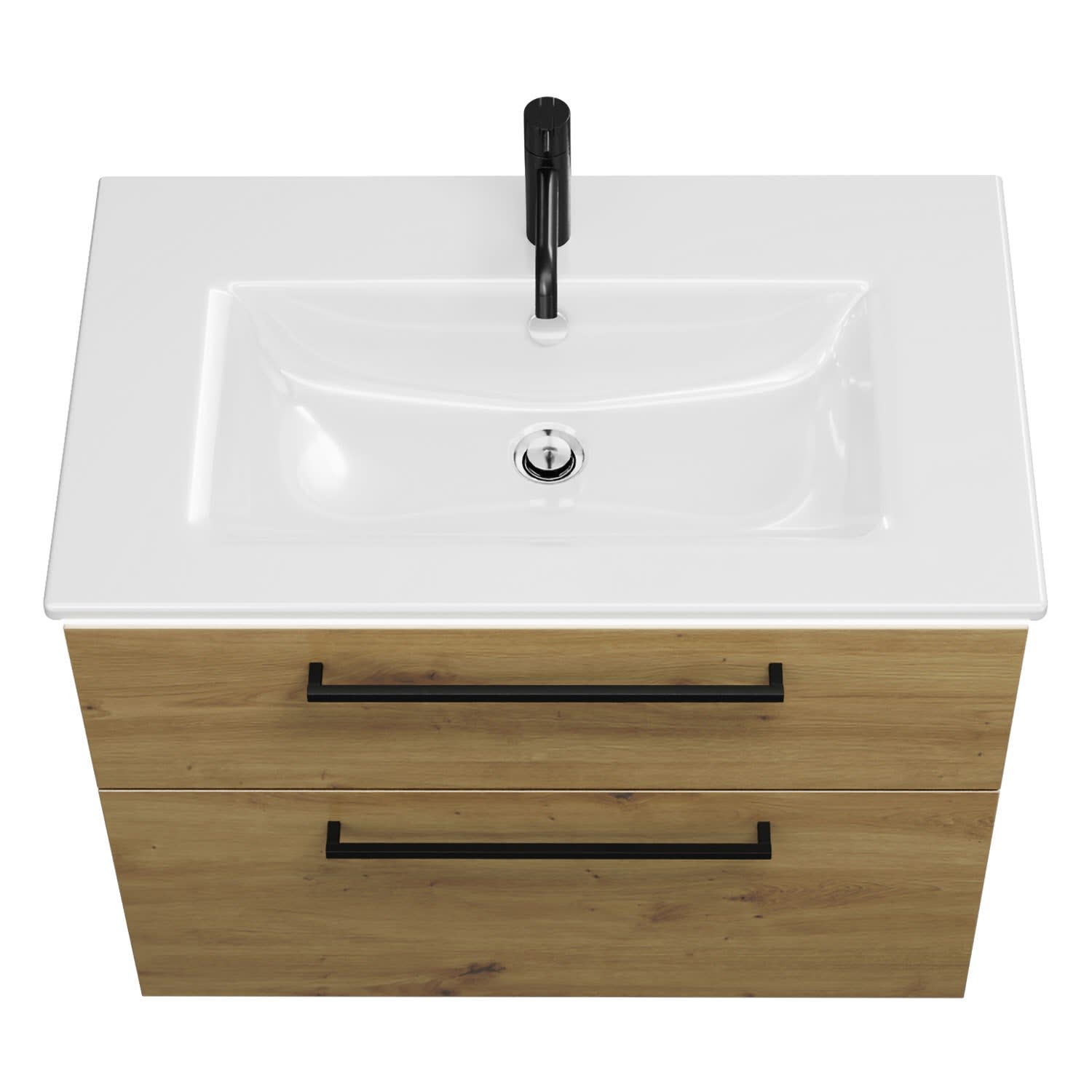 burgbad Eqio Waschtischkombination mit Keramik-Waschtisch Slim und LED-Beleuchtung, 82 cm, mit Stangengriff G0234