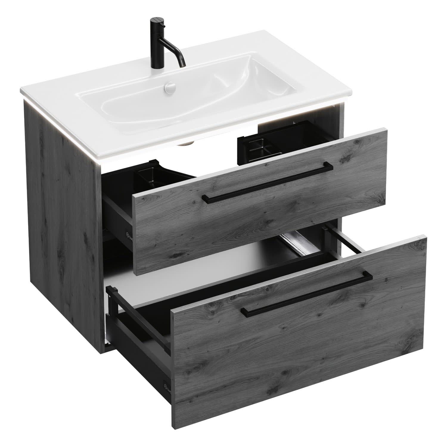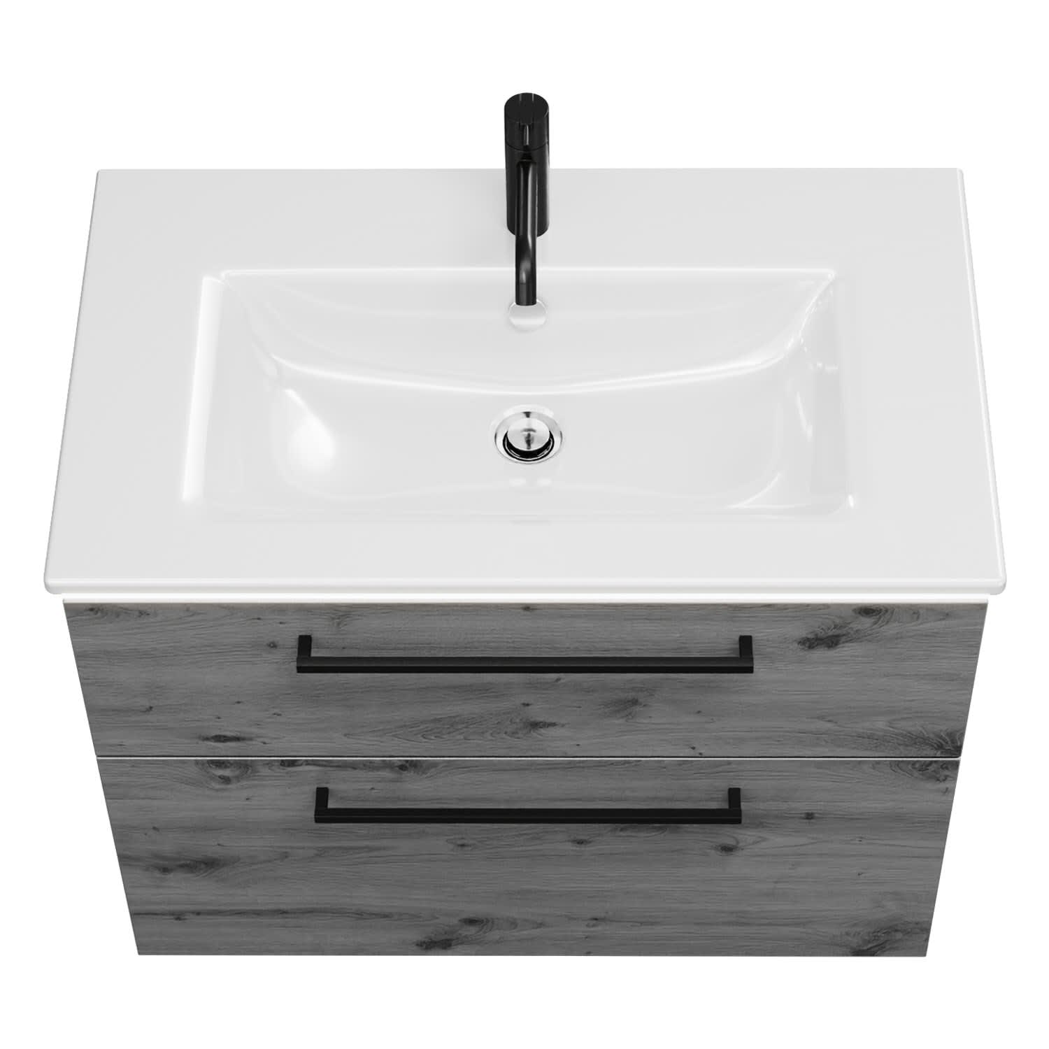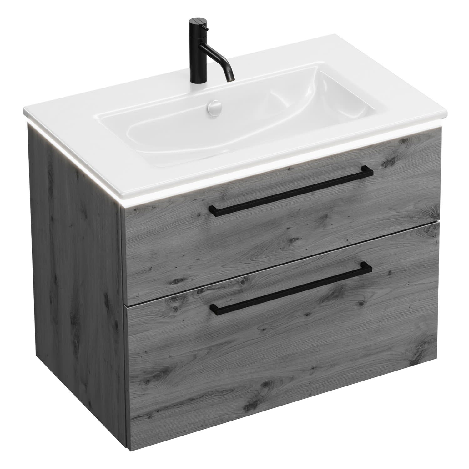 burgbad Eqio Waschtischkombination mit Keramik-Waschtisch Slim und LED-Beleuchtung, 82 cm, mit Stangengriff G0234