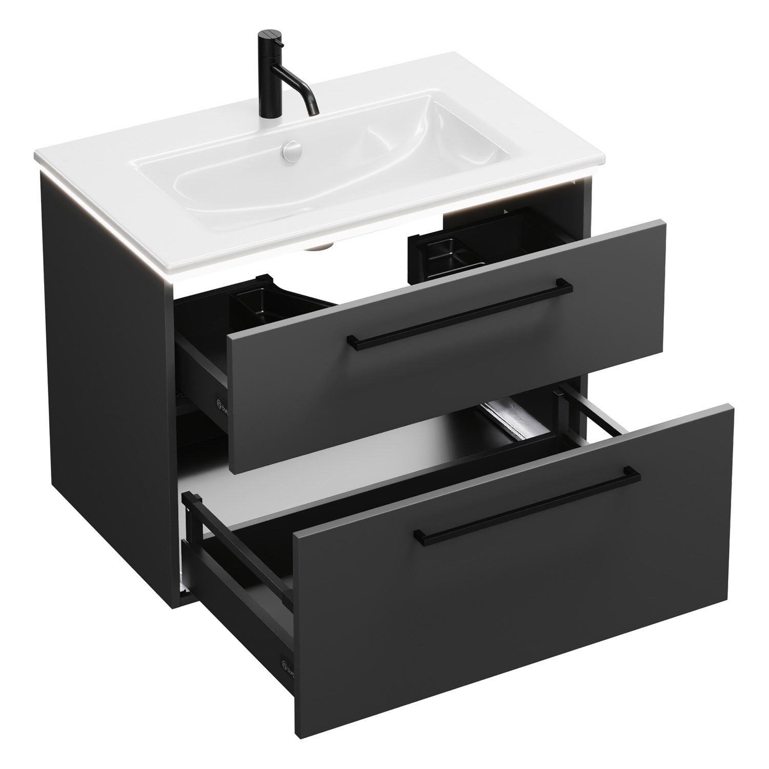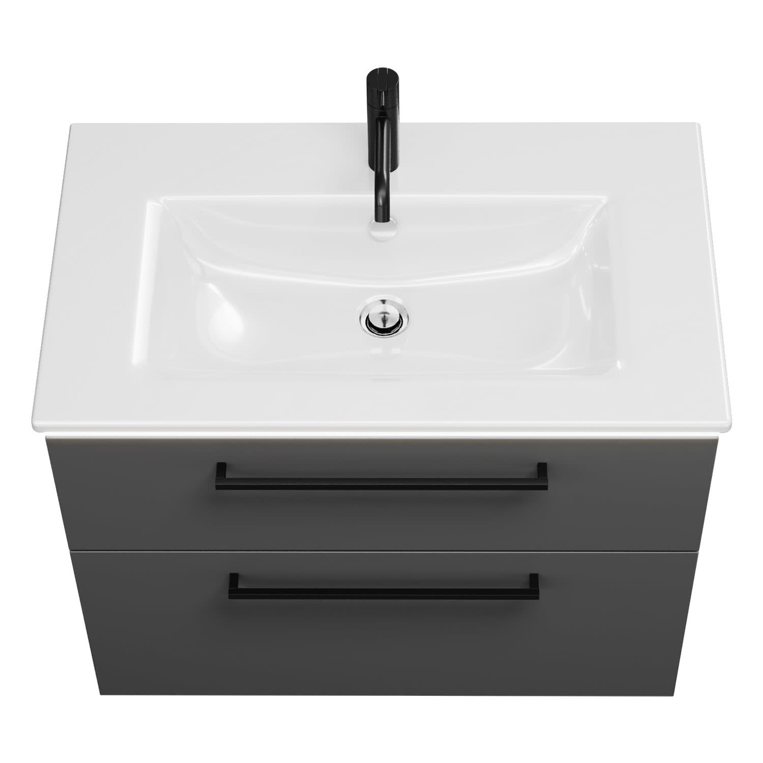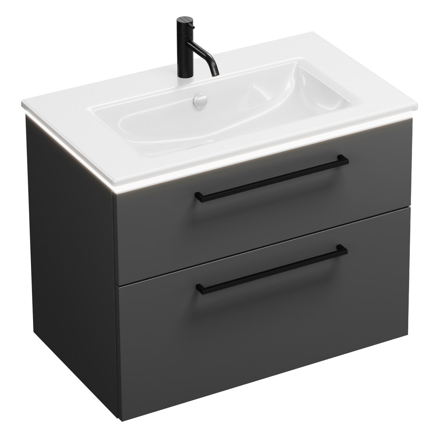 burgbad Eqio Waschtischkombination mit Keramik-Waschtisch Slim und LED-Beleuchtung, 82 cm, mit Stangengriff G0234