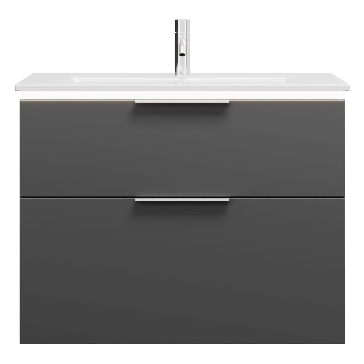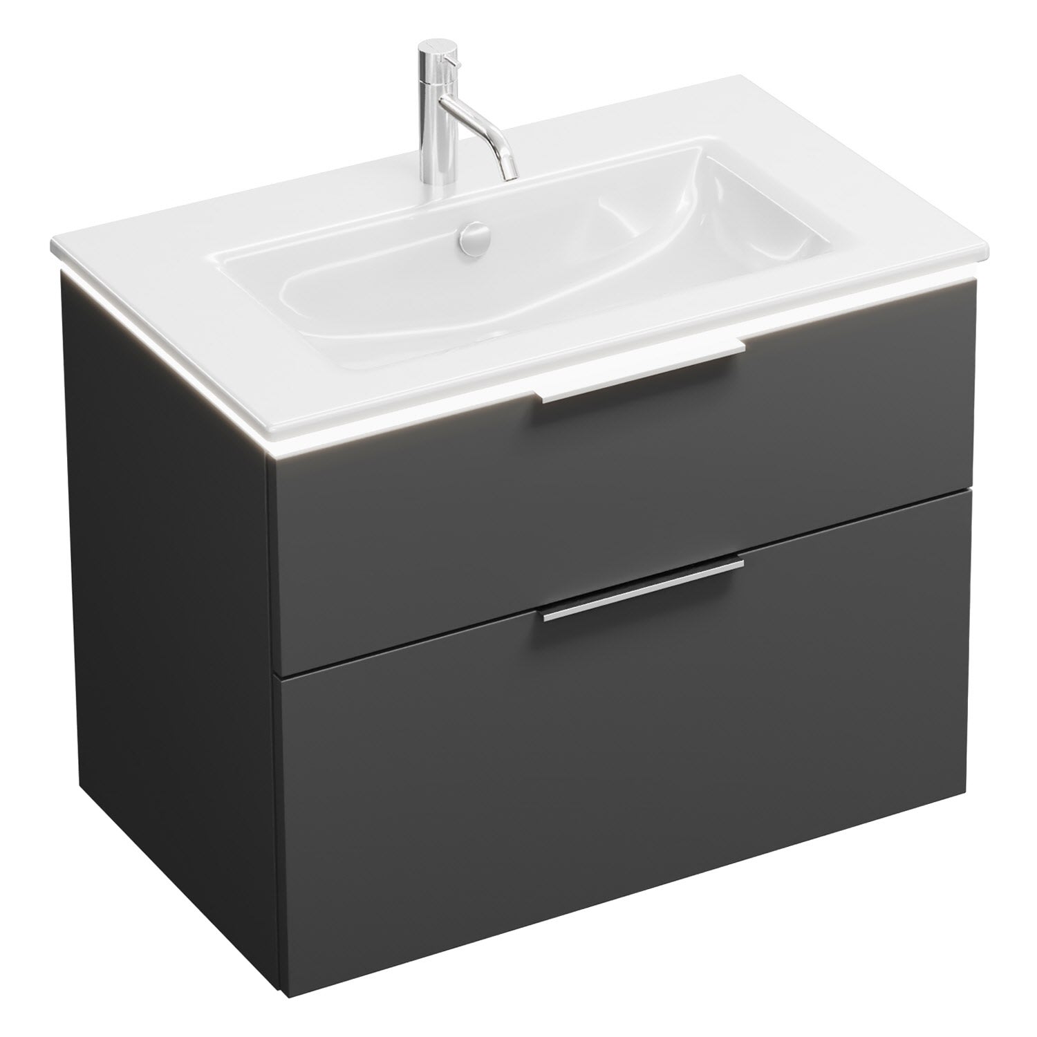 burgbad Eqio Waschtischkombination mit Keramik-Waschtisch Slim und LED-Beleuchtung, 82 cm, mit Griff G0146