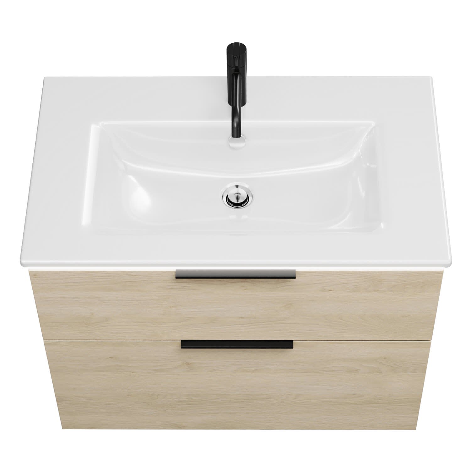 - 1 Schublade oben, 35 cm tief, mit Siphonausschnitt und Inneneinteilung