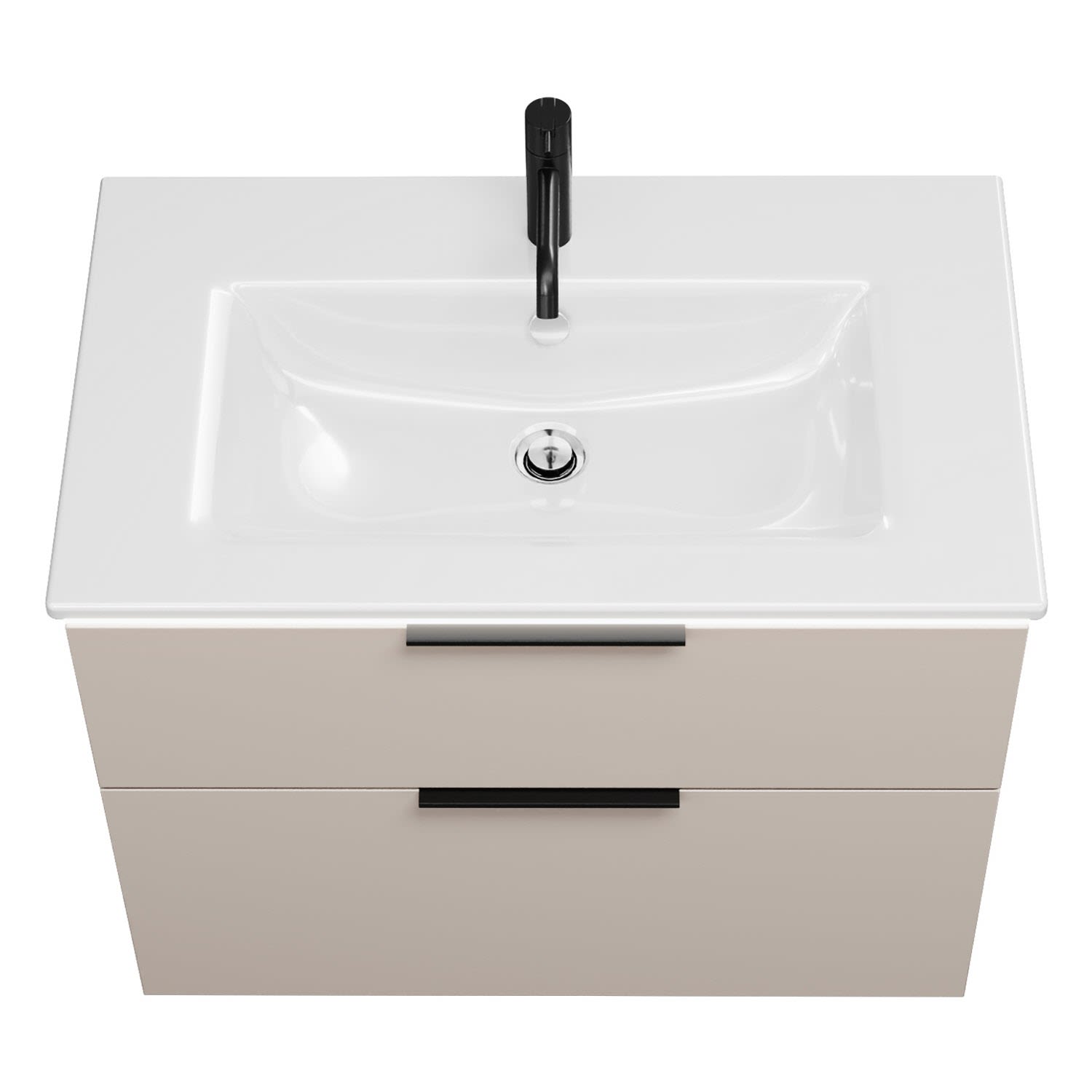 - 1 Schublade oben, 35 cm tief, mit Siphonausschnitt und Inneneinteilung