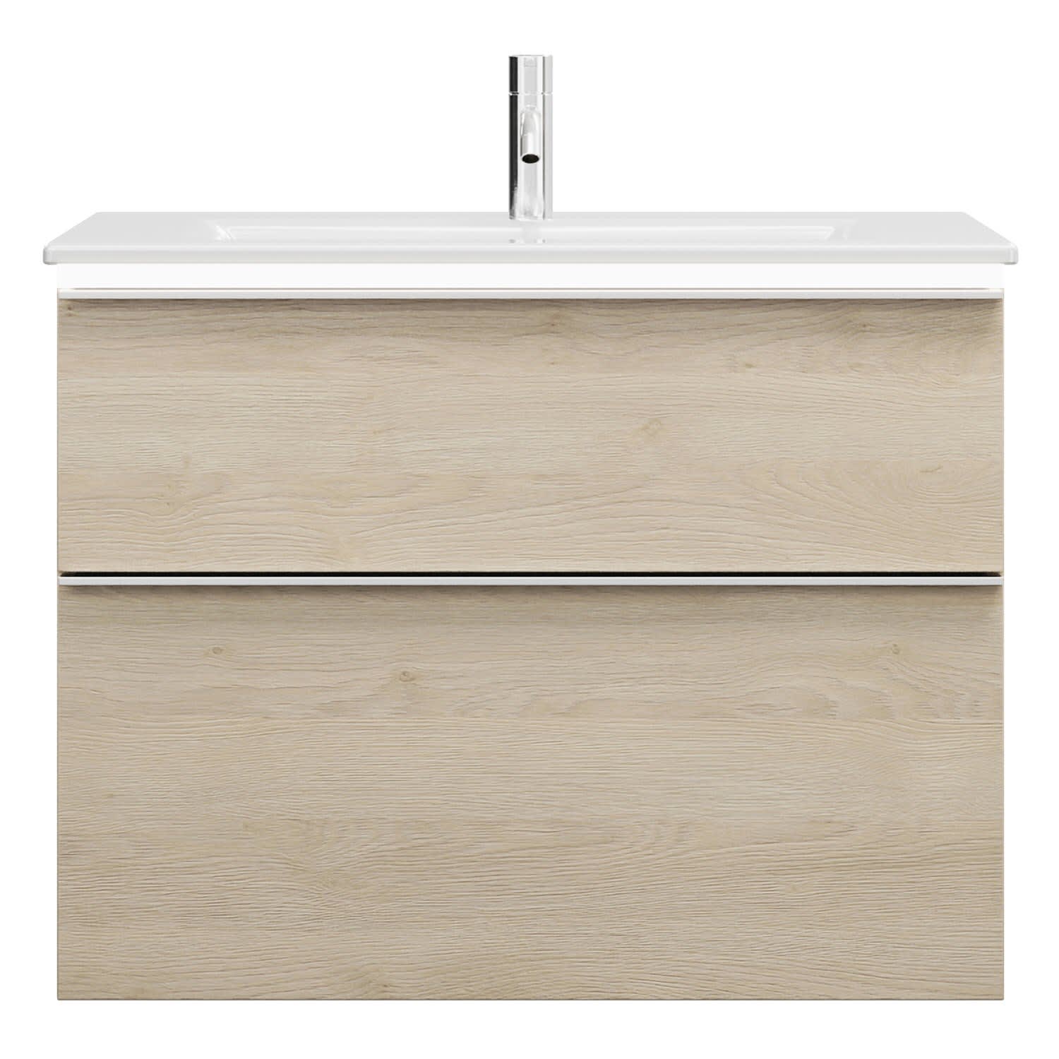 burgbad Eqio Waschtischkombination mit Keramik-Waschtisch Slim und LED-Beleuchtung, 82 cm, mit Griffleiste G0251