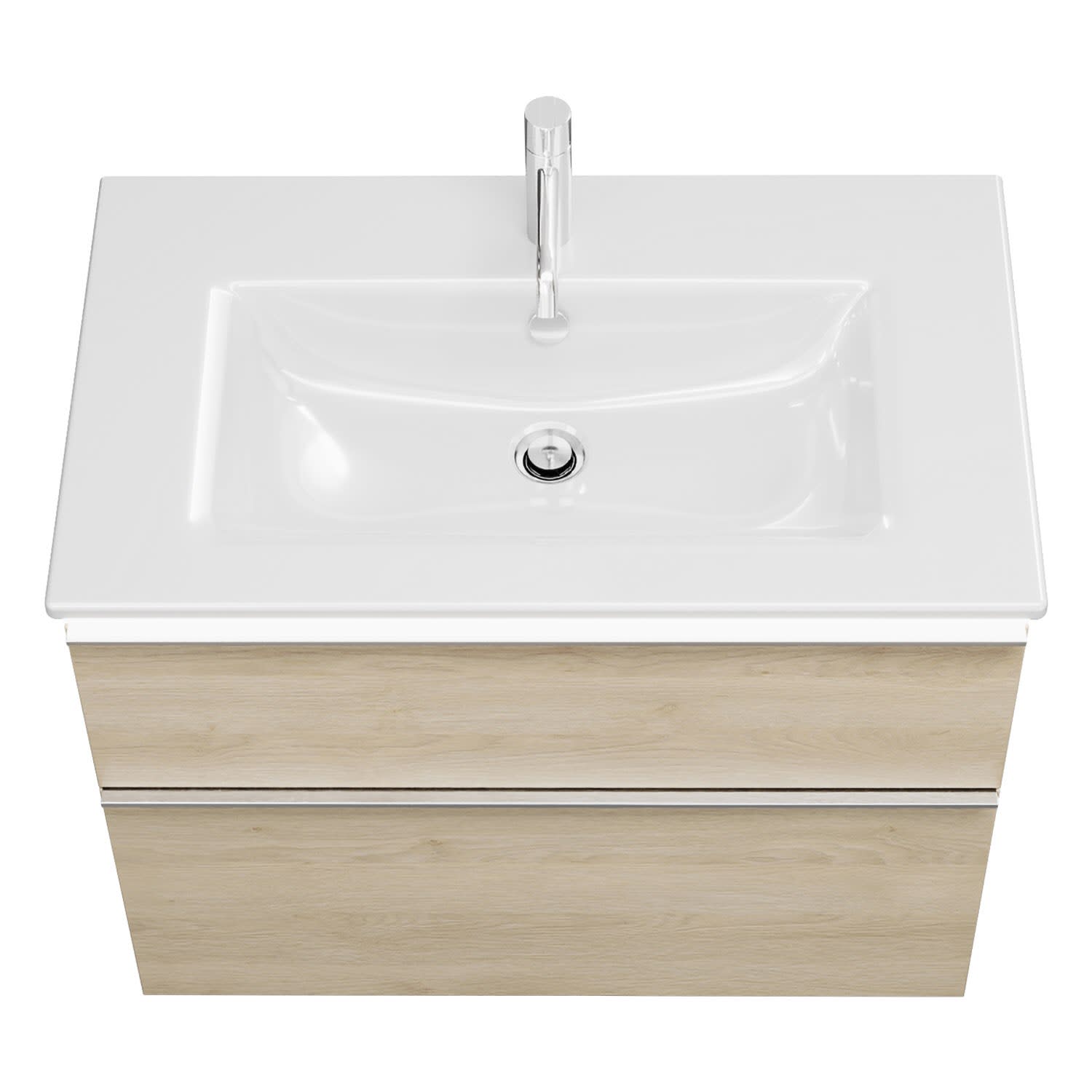 - 1 Schublade oben, 35 cm tief, mit Siphonausschnitt und Inneneinteilung