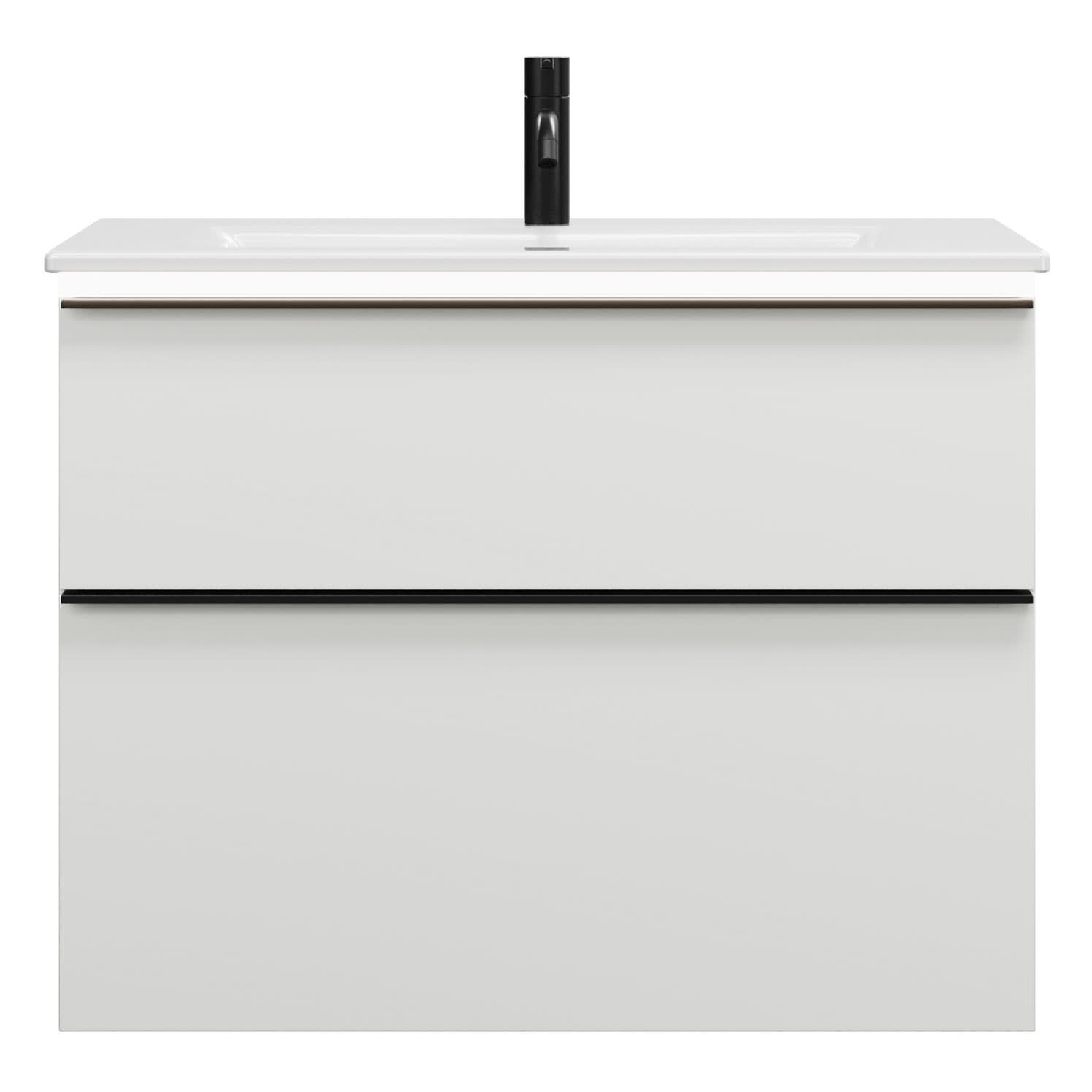burgbad Eqio Waschtischkombination mit Keramik-Waschtisch Slim und LED-Beleuchtung, 82 cm, mit Griffleiste G0252
