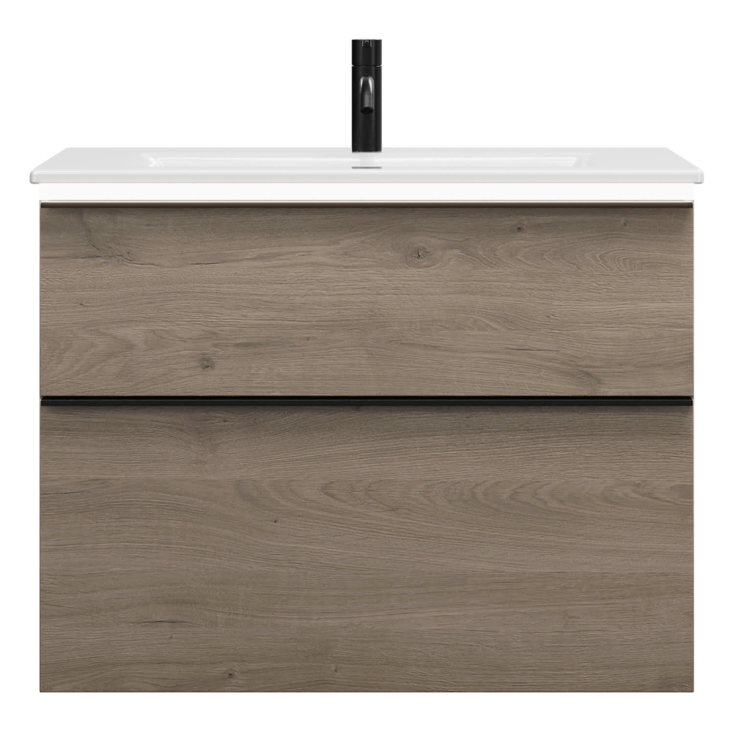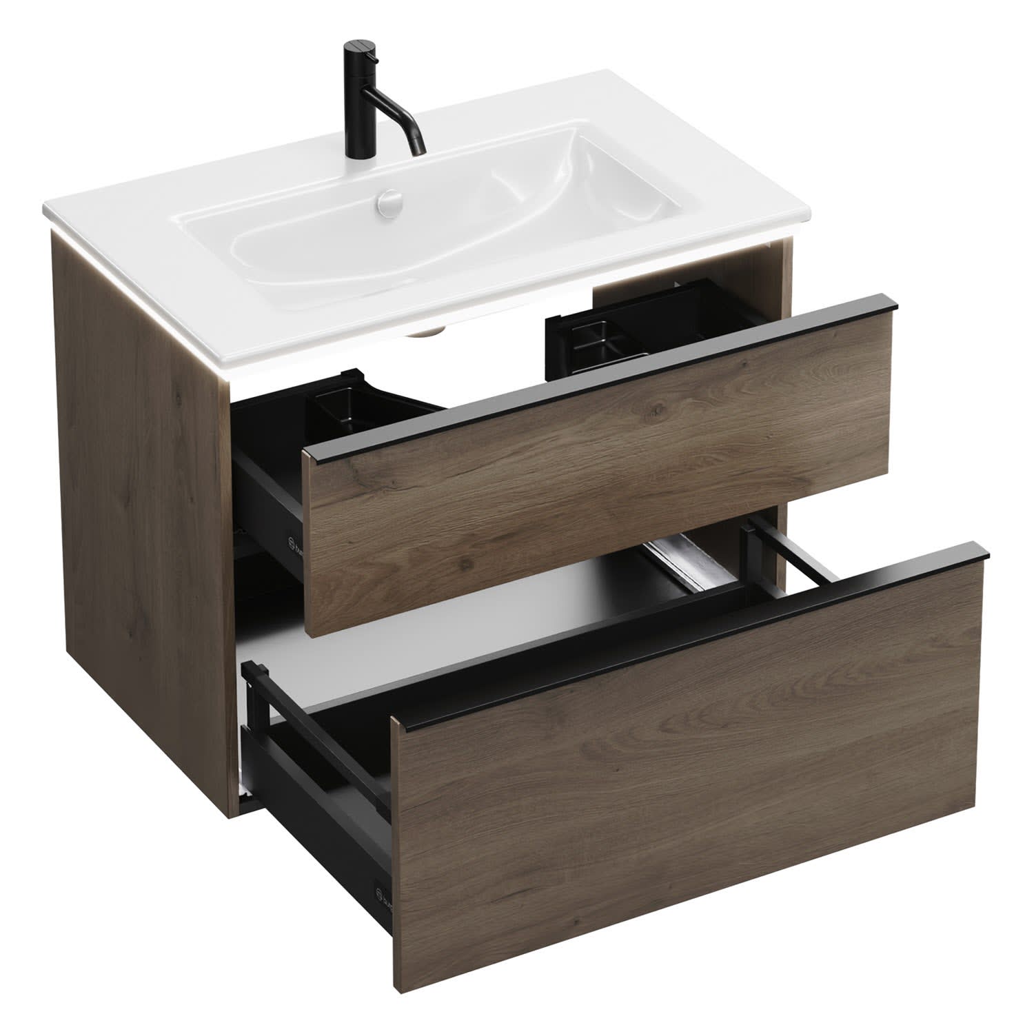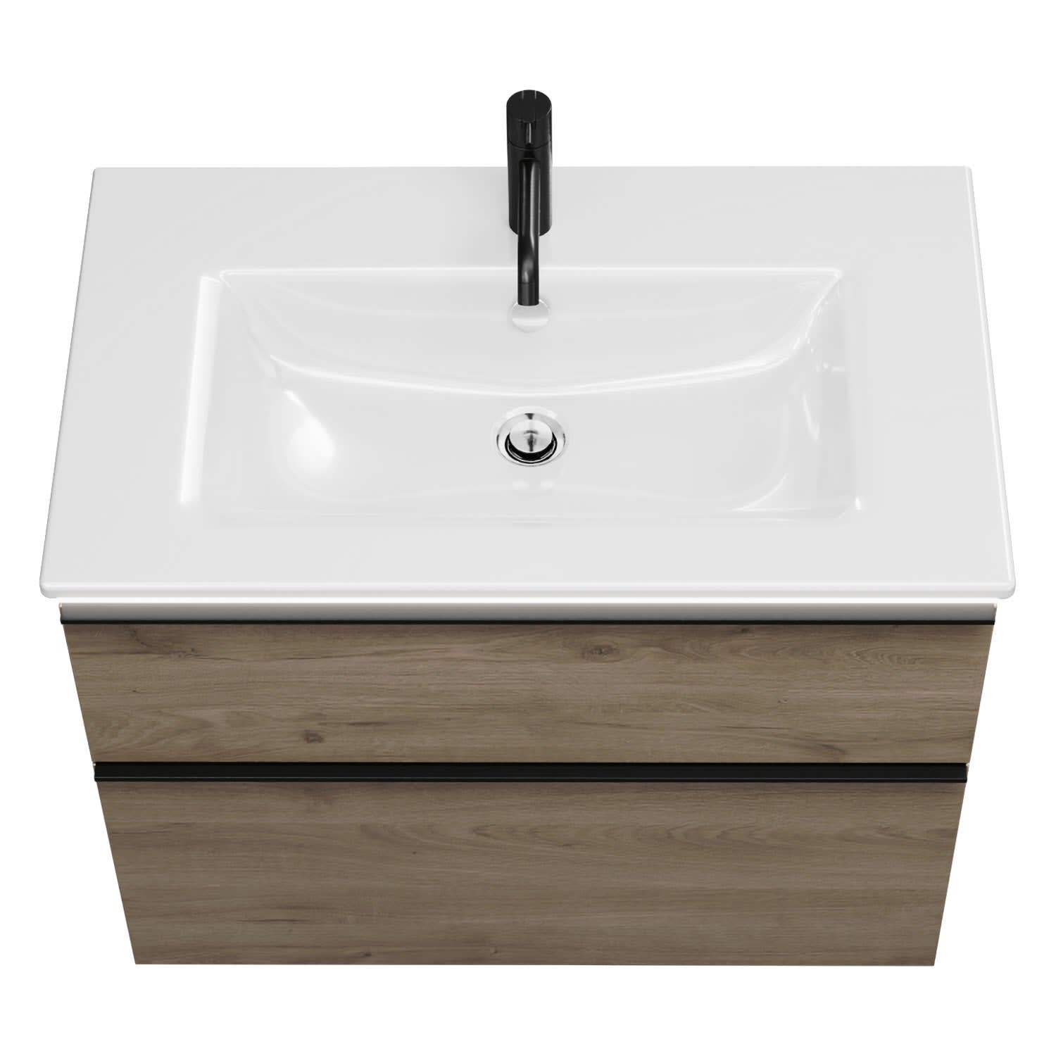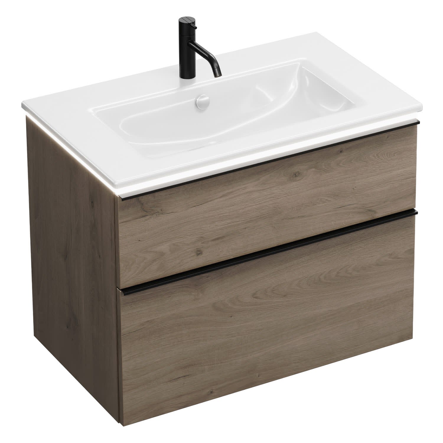 burgbad Eqio Waschtischkombination mit Keramik-Waschtisch Slim und LED-Beleuchtung, 82 cm, mit Griffleiste G0252