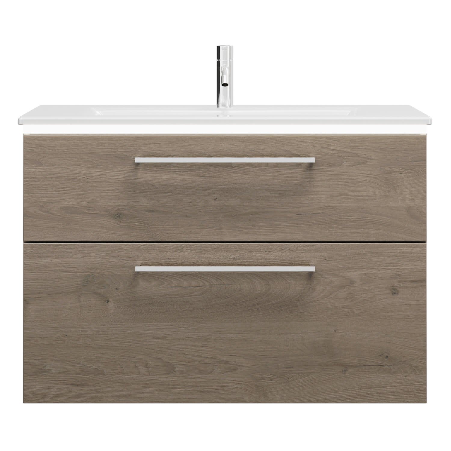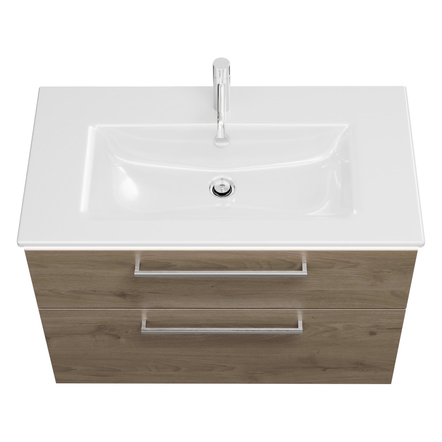 burgbad Eqio Waschtischkombination mit Keramik-Waschtisch Slim und LED-Beleuchtung, 92 cm, mit Stangengriff P95