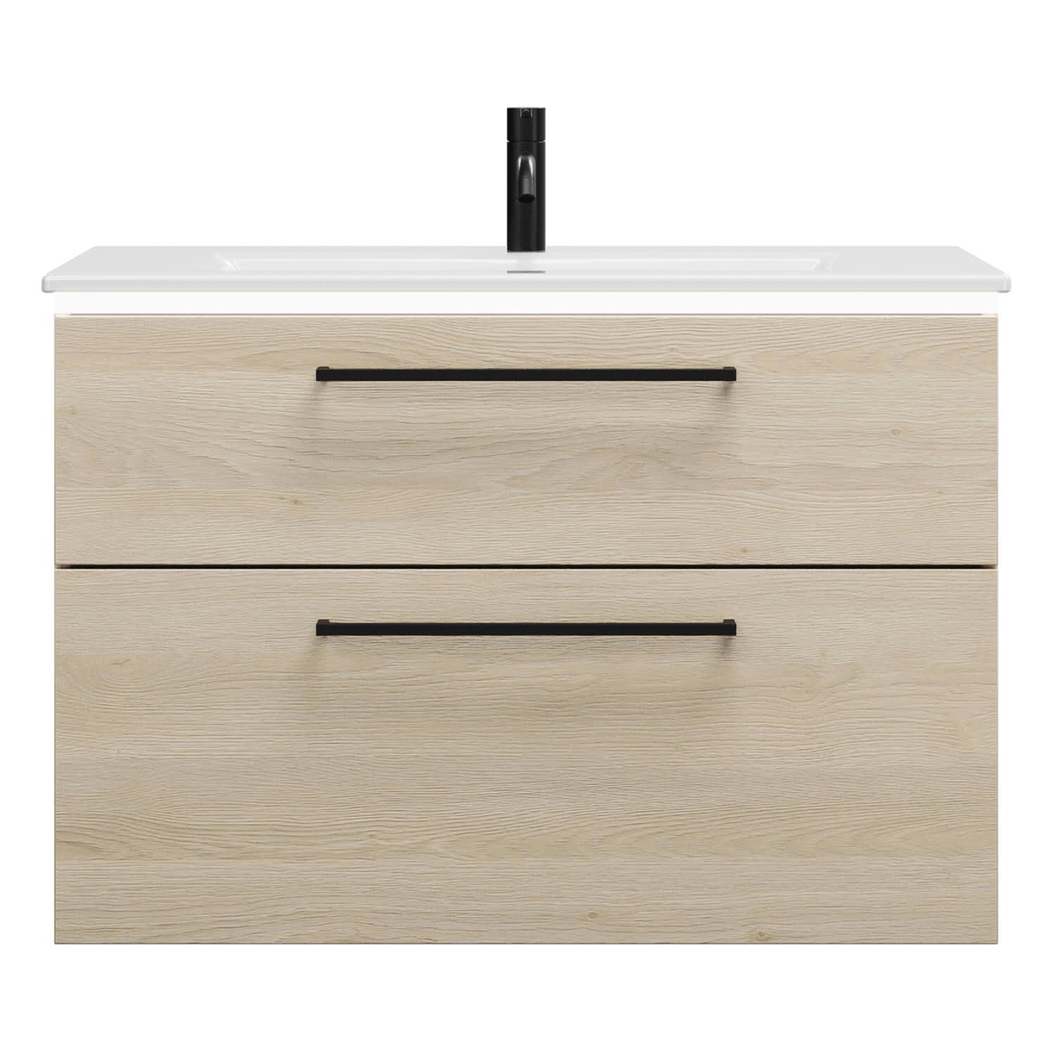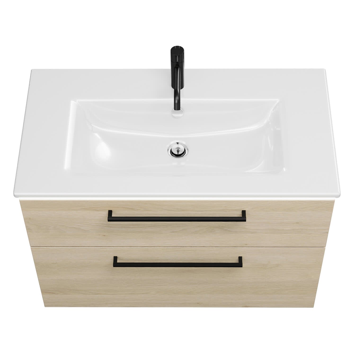 burgbad Eqio Waschtischkombination mit Keramik-Waschtisch Slim und LED-Beleuchtung, 92 cm, mit Stangengriff G0234