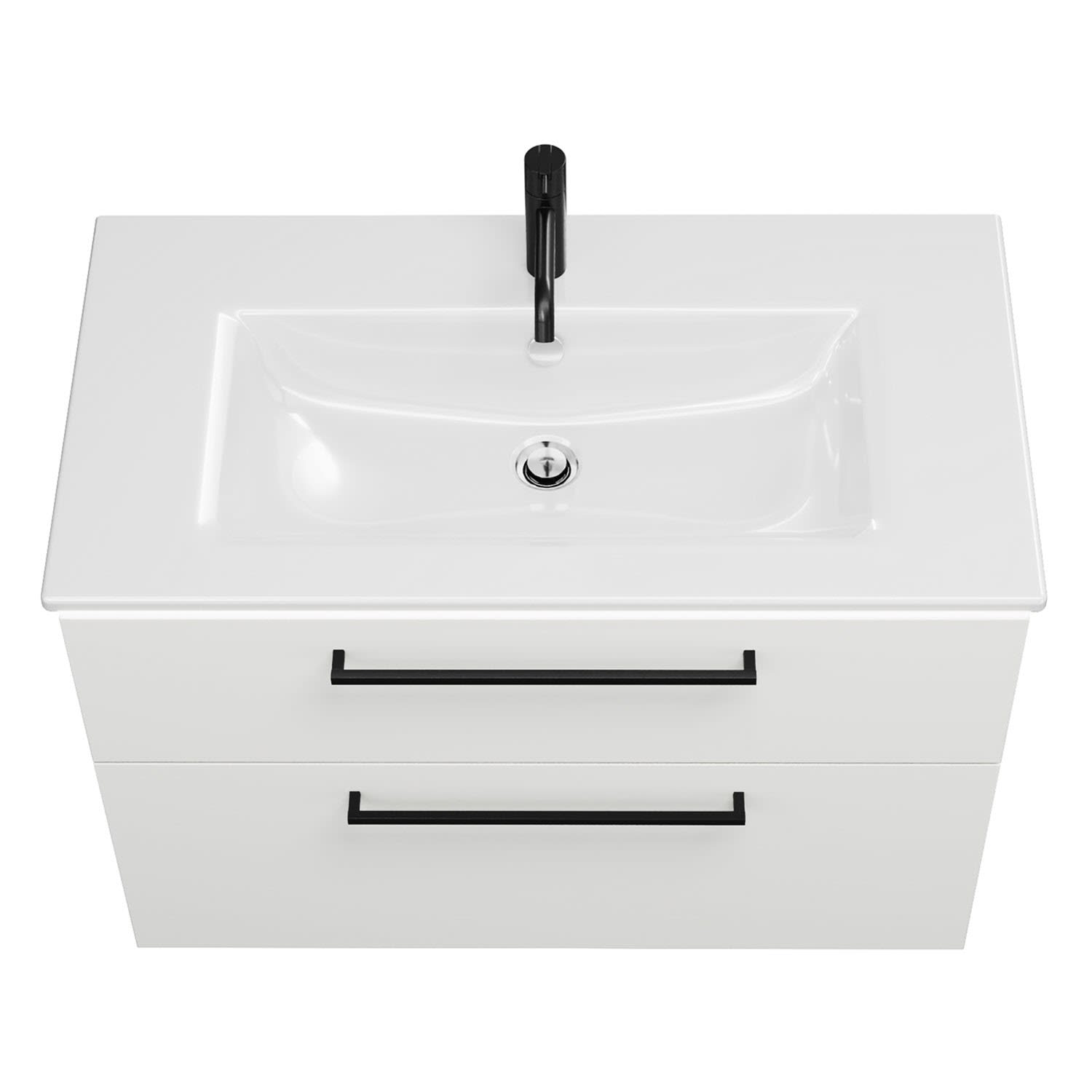 burgbad Eqio Waschtischkombination mit Keramik-Waschtisch Slim und LED-Beleuchtung, 92 cm, mit Stangengriff G0234