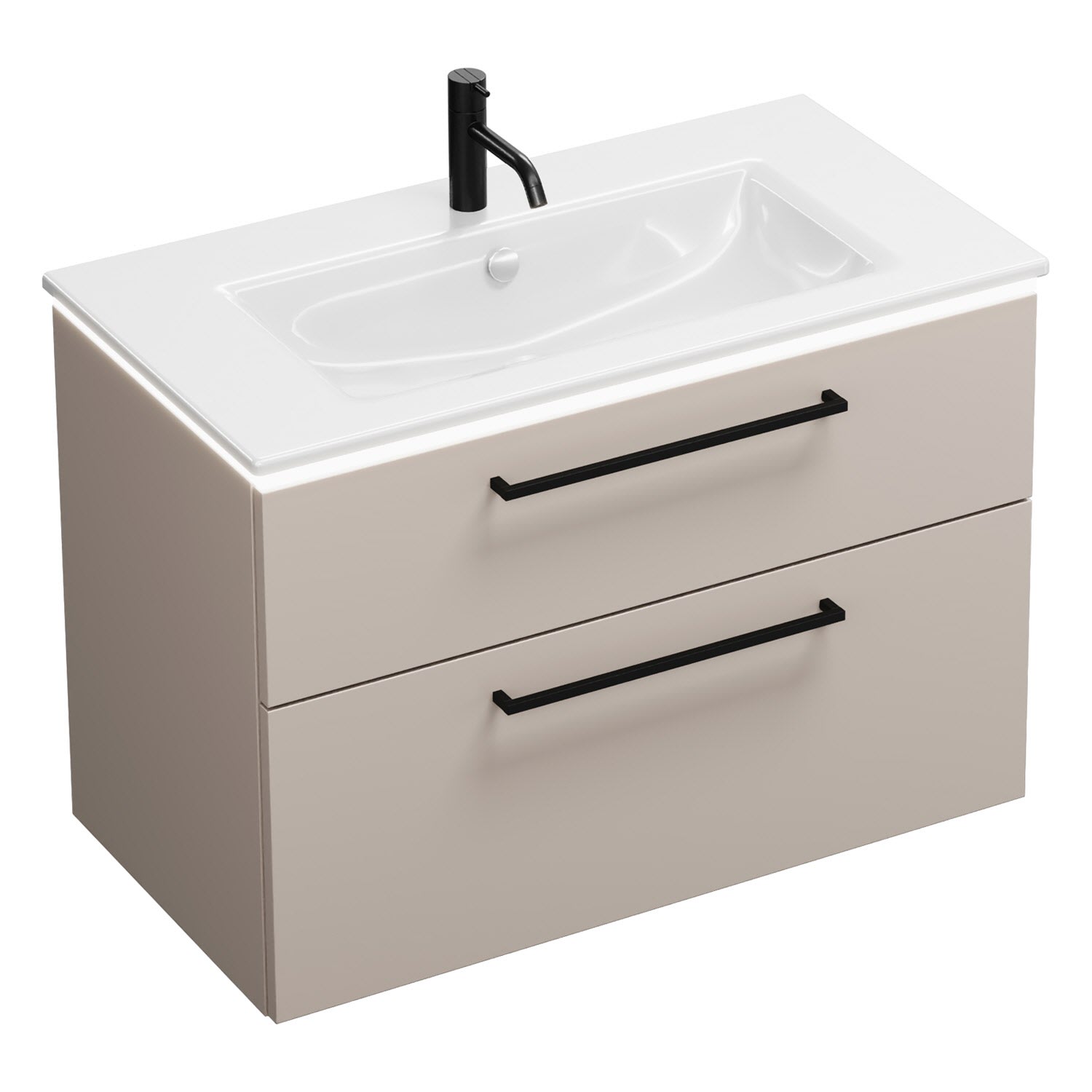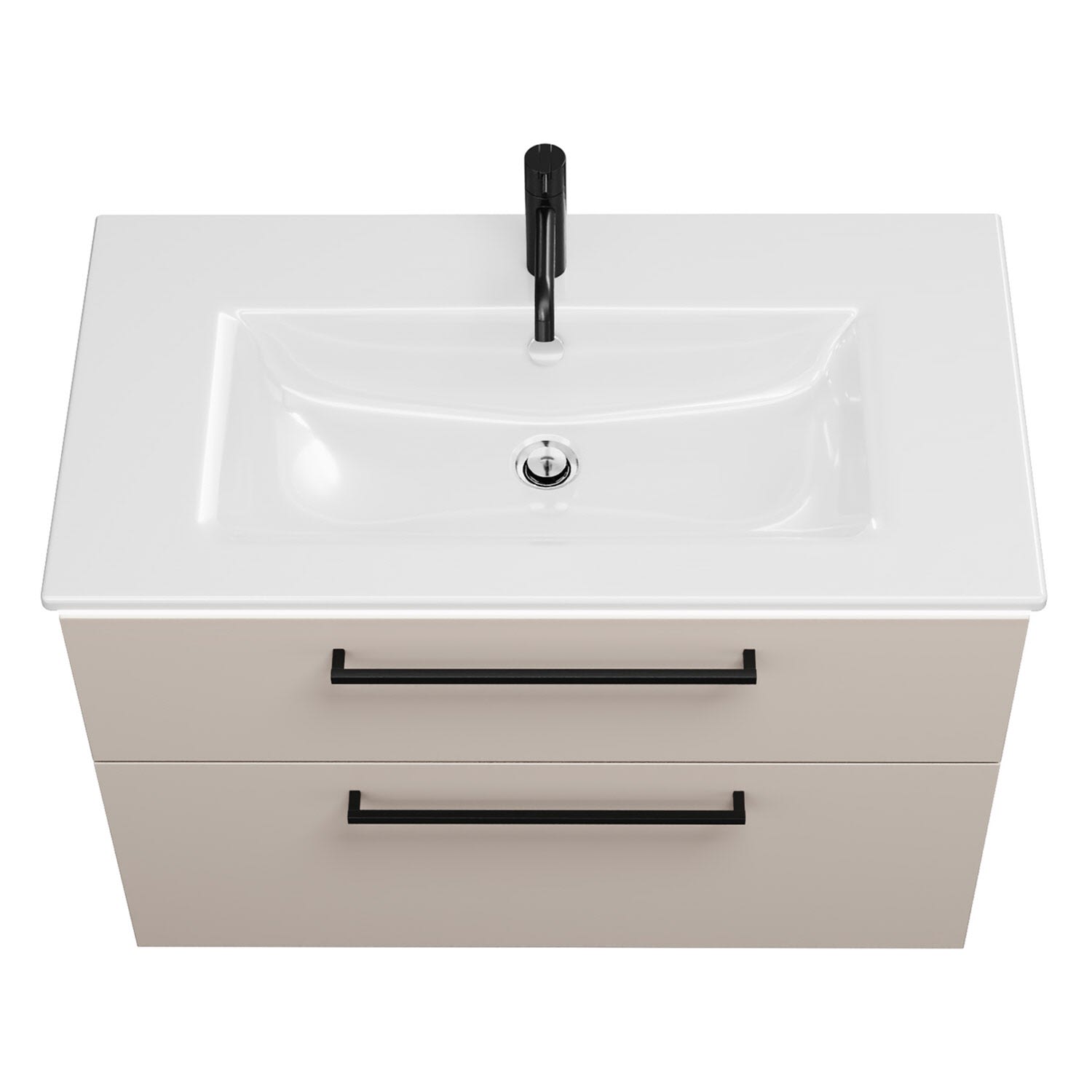 - 1 Schublade oben, 35 cm tief, mit Siphonausschnitt und Inneneinteilung